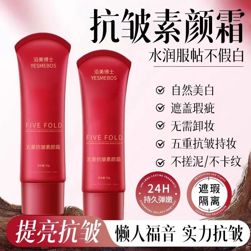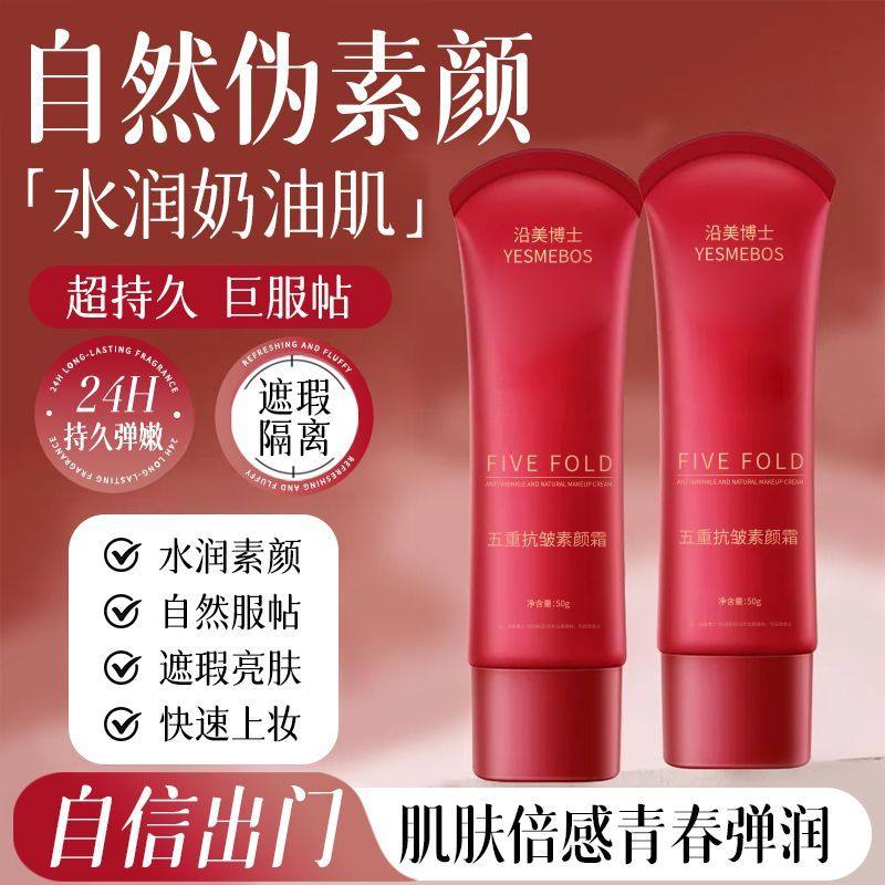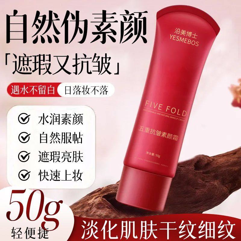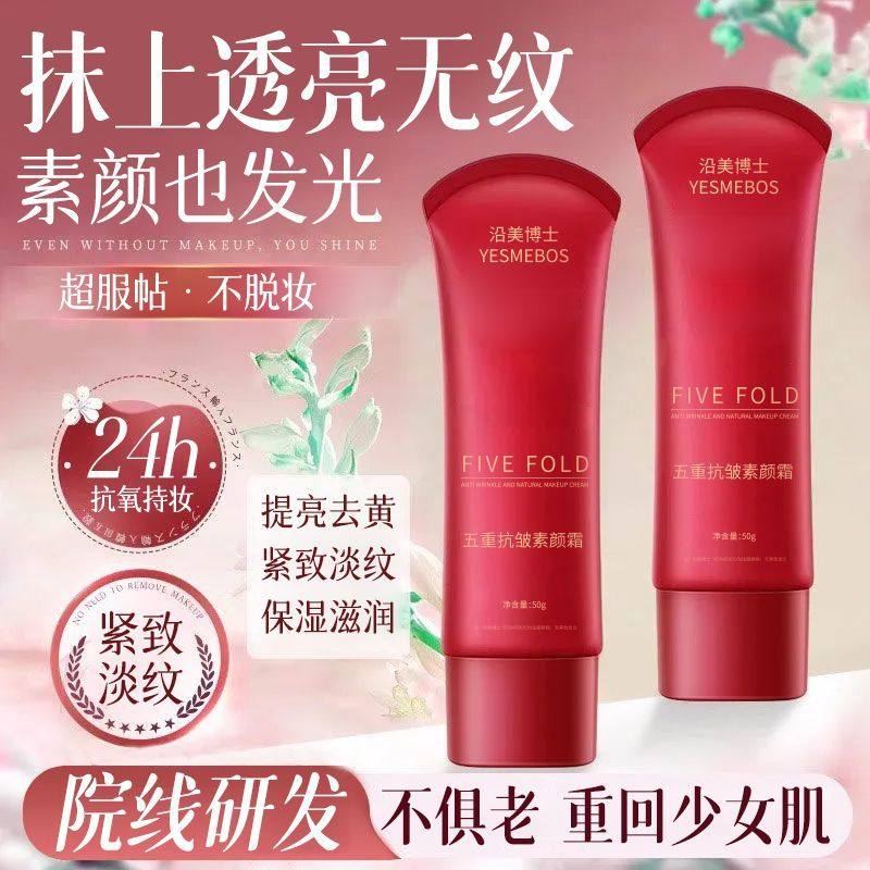 正品五重抗皱素颜霜保湿遮瑕提亮肤色水润妆感自然不假白滋润护肤