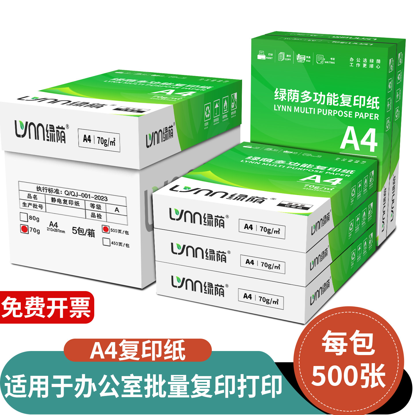 新绿天章A4纸打印复印纸a4 70g80克500页白纸 办公草稿纸整箱乐活