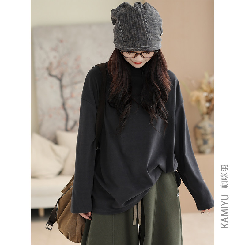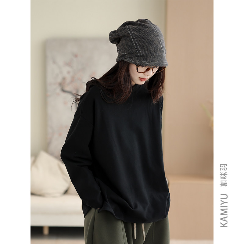 咖咪羽打底衫女秋季2025新款女士上衣套头时尚宽松大码长袖上衣