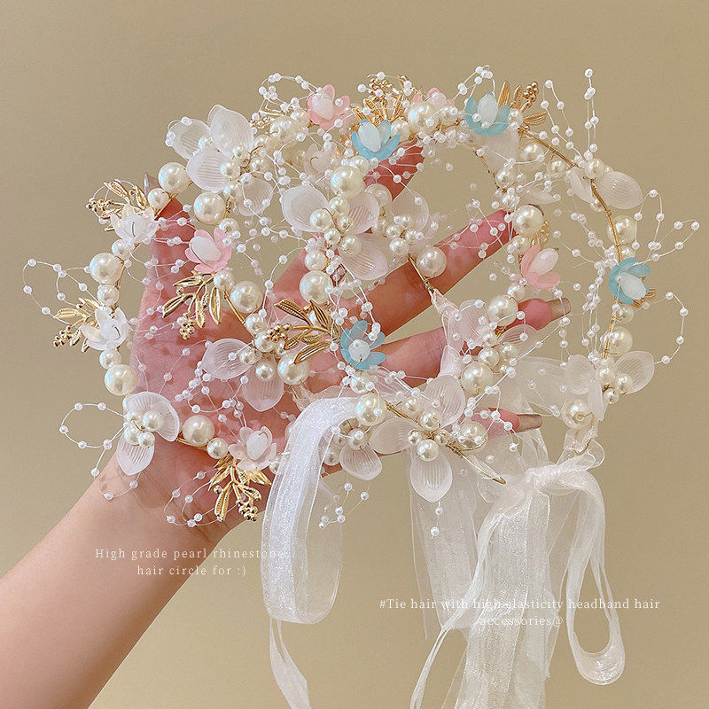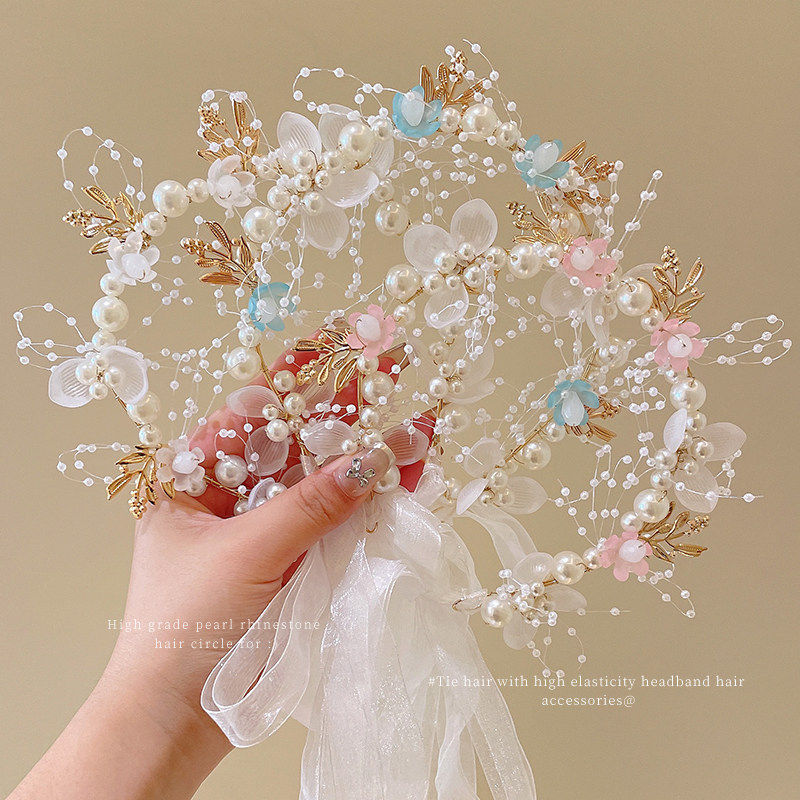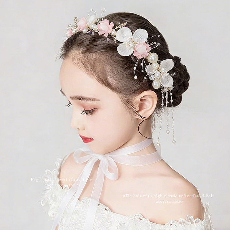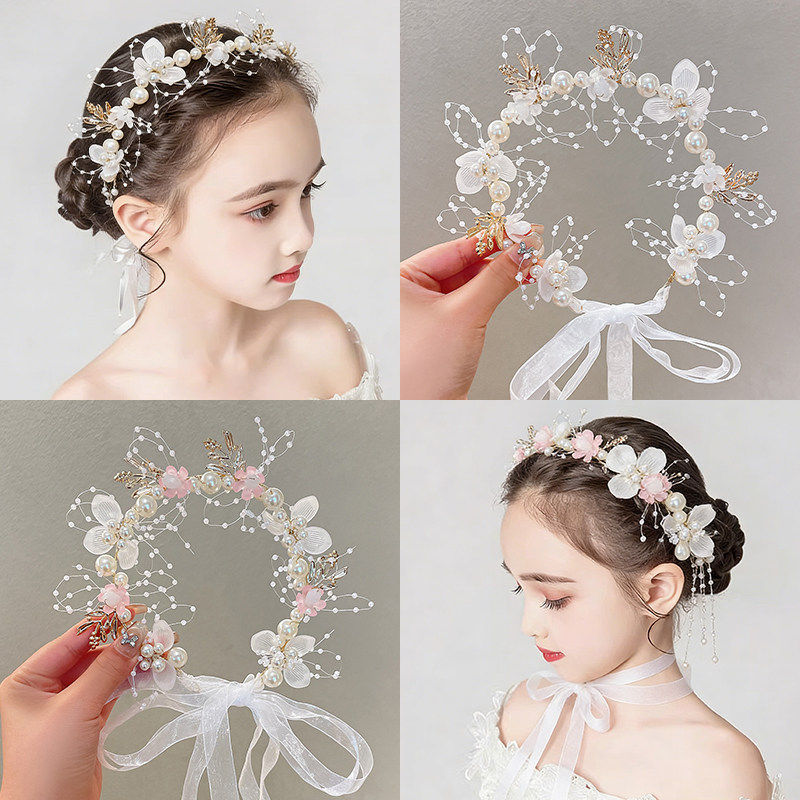 公主皇冠发饰儿童婚礼花童超仙头花珍珠发箍女孩表演发卡头箍簪花