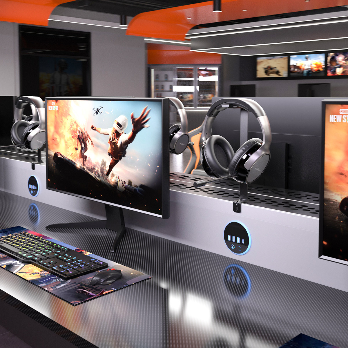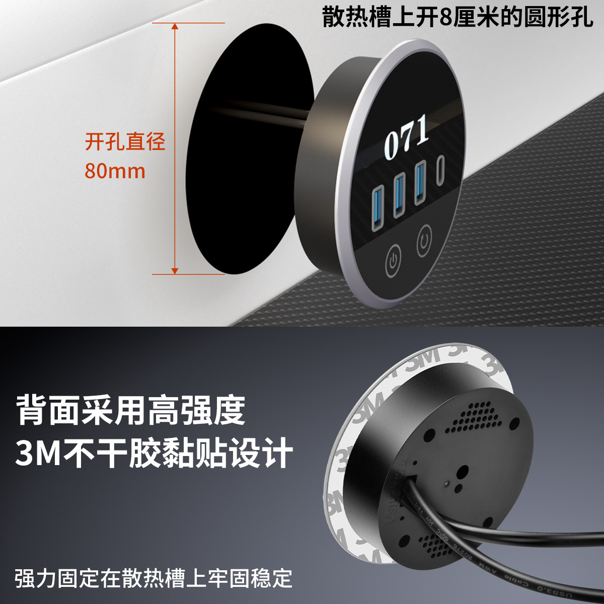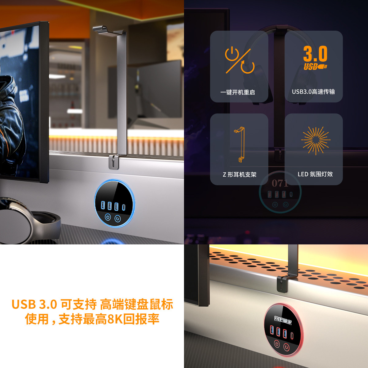 3.0USB散热槽/镶嵌式网吧管家071电脑桌面开关圆形可选配耳机支架