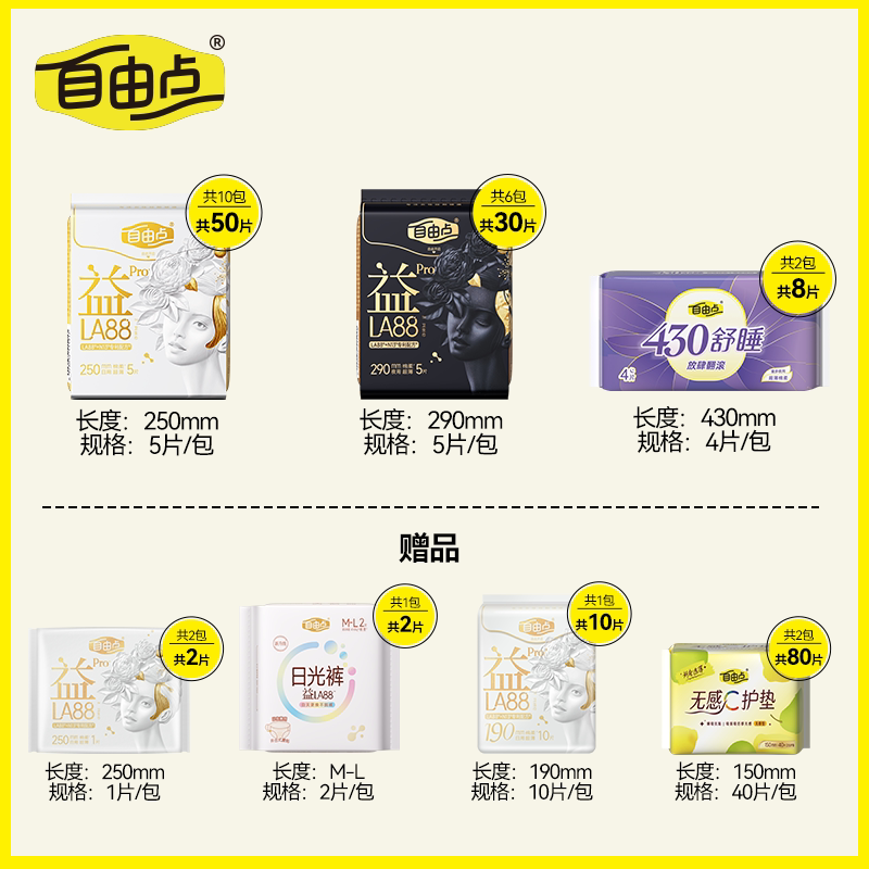 【超级88爆品日】自由点新品益生菌pro日夜用卫生巾组合姨妈巾zb