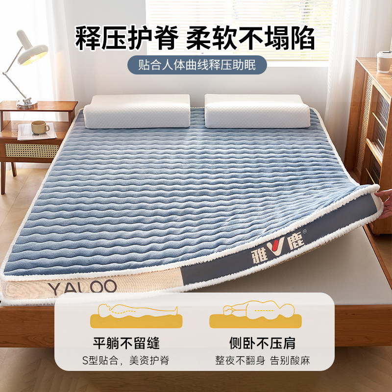 雅鹿牛奶绒乳胶床垫家用卧室软垫榻榻米海绵垫子床褥专用折叠宿舍