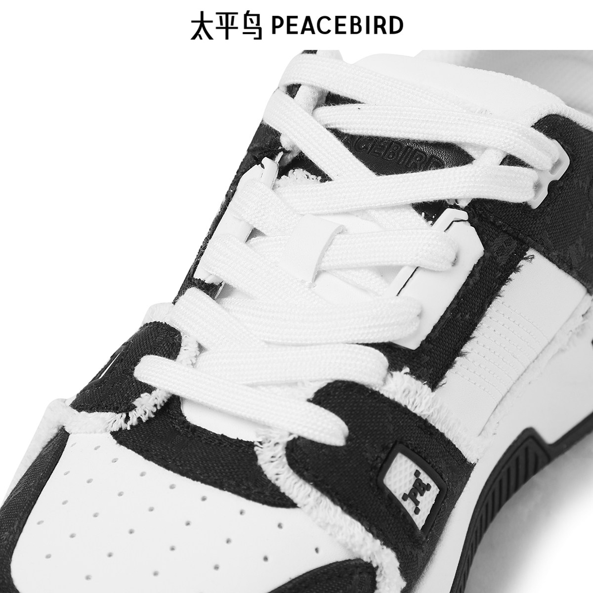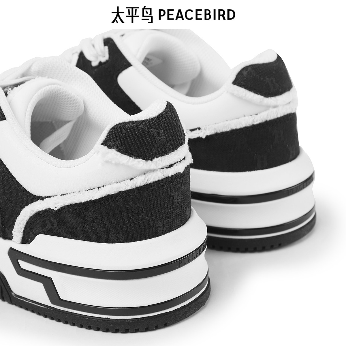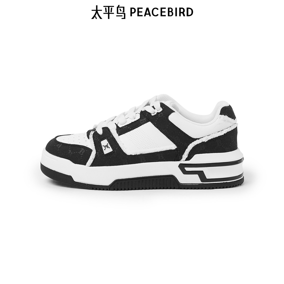 太平鸟男装 时尚黑白配色休闲板鞋运动板鞋潮流老花男鞋