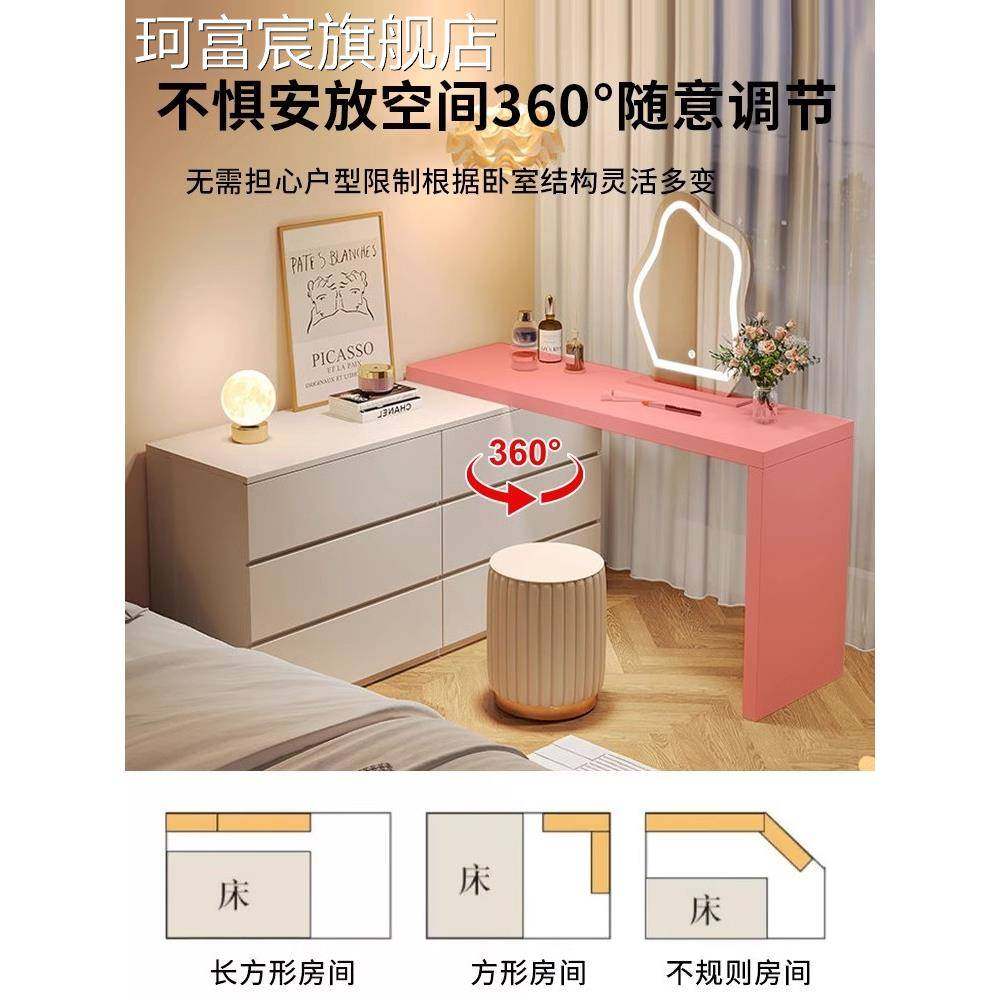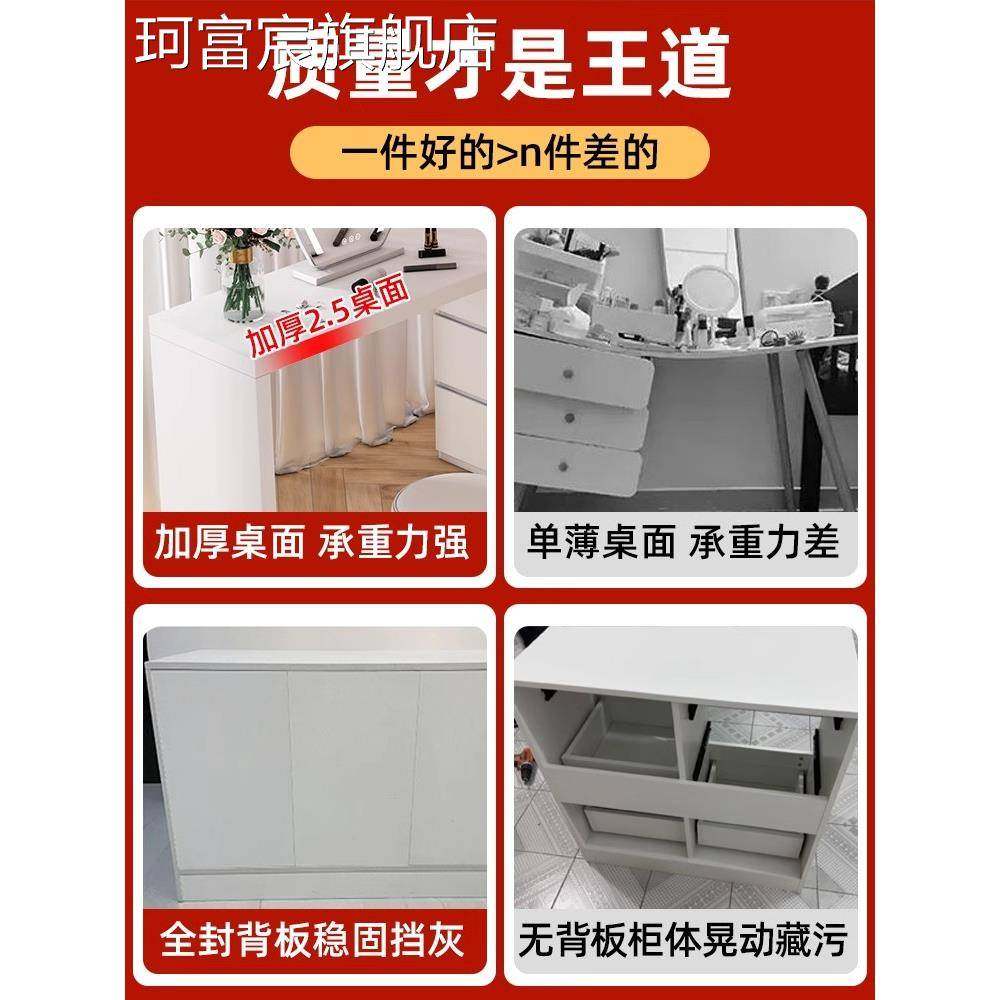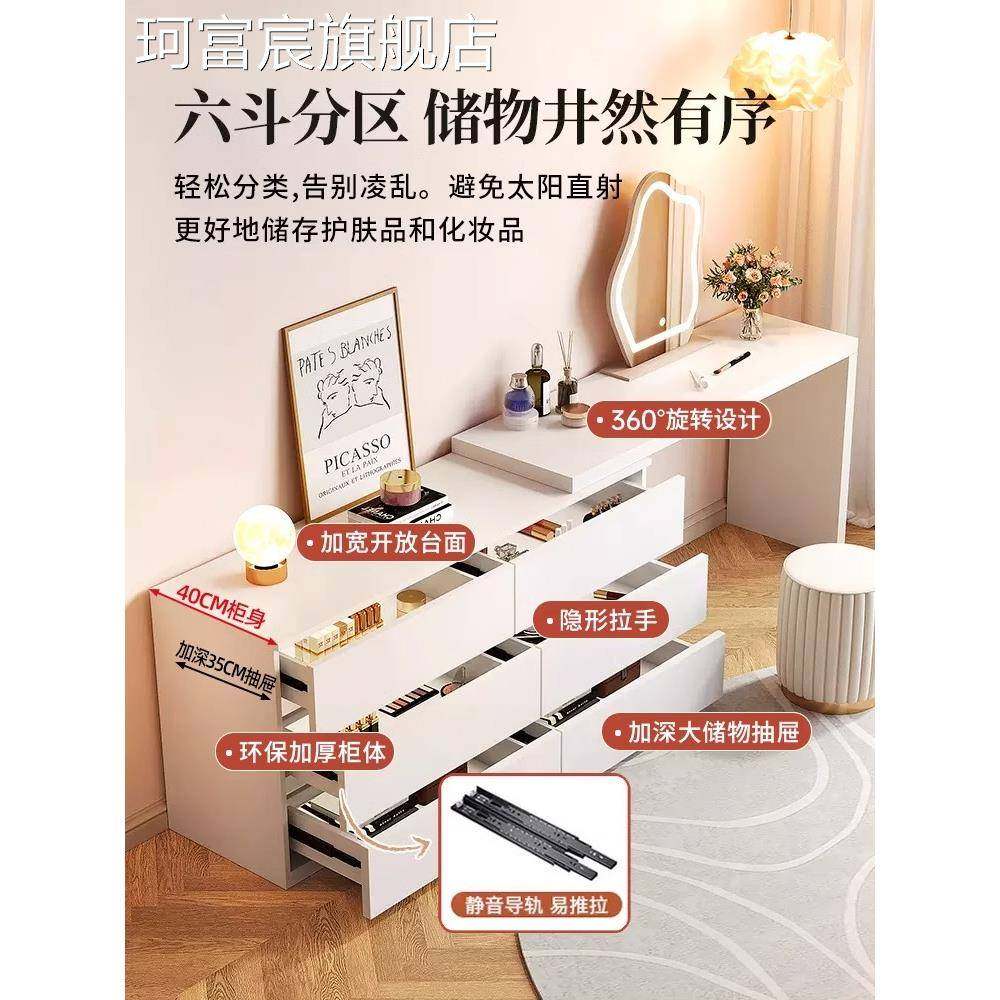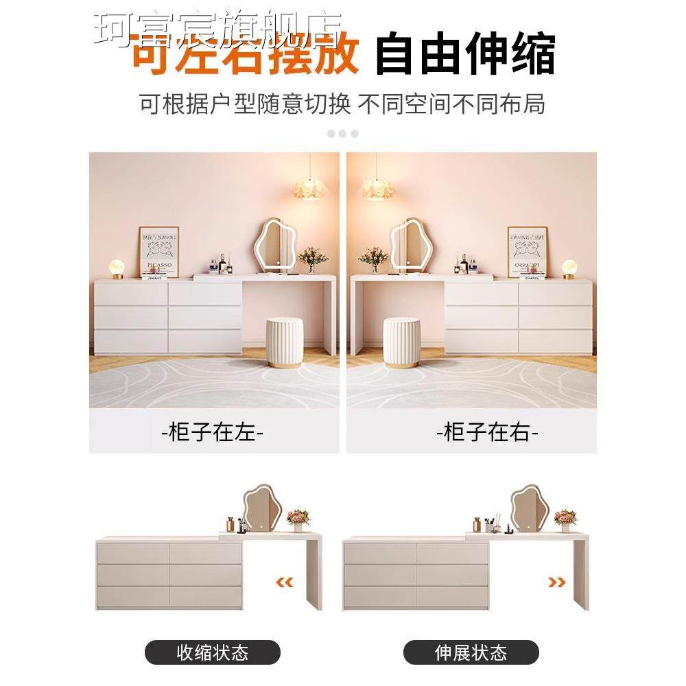 珂富宸梳妆台卧室书桌抽屉柜集成小公寓现代简单流行无障碍豪华奶油风格可伸缩梳妆台摆件饰品床笠拉车