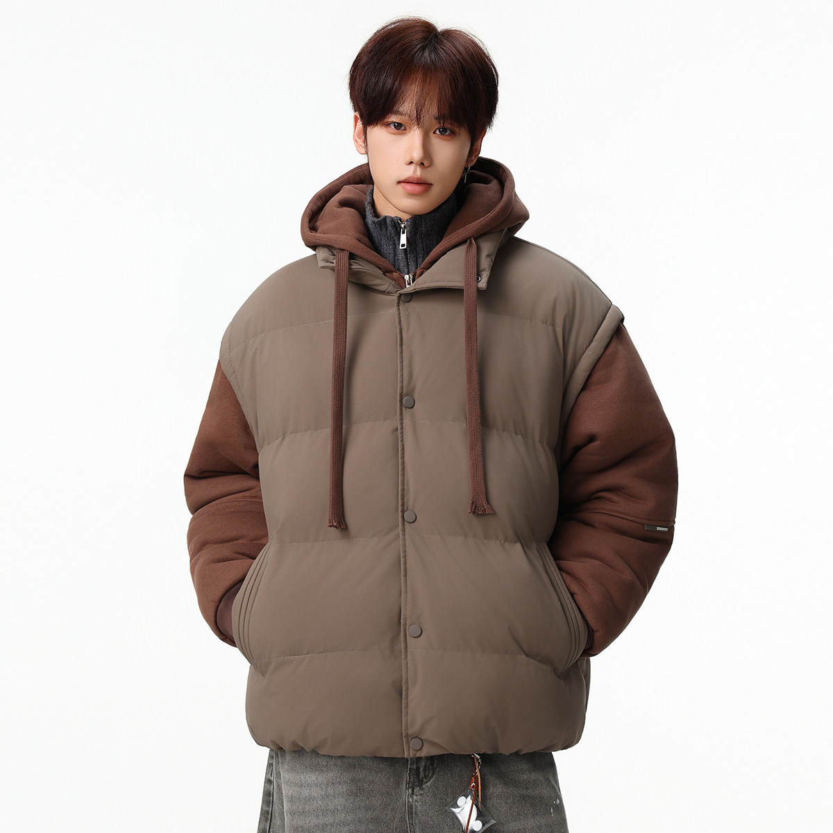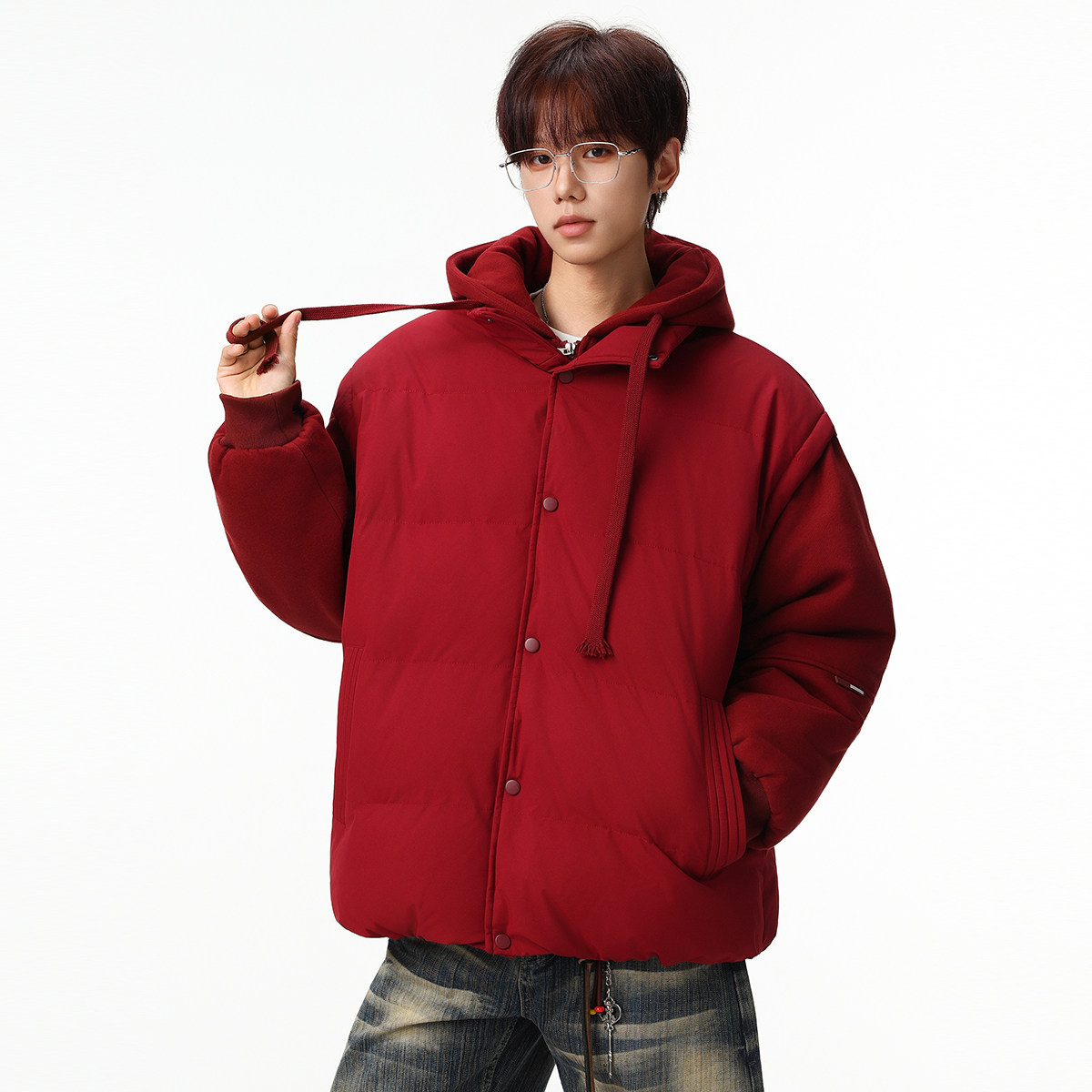 回力假两件连帽棉服外套男士冬季2025新款加厚保暖青少年冬装棉衣