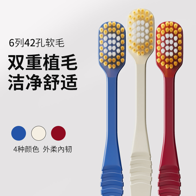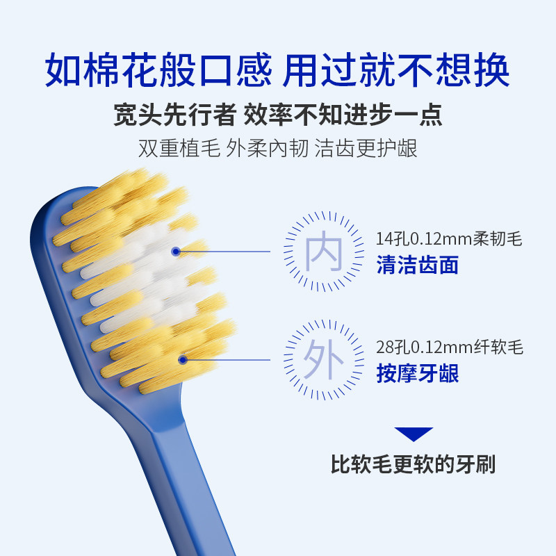 软毛牙刷成人宽头家庭装家用护龈清洁牙缝男女情侣款高颜值2只装