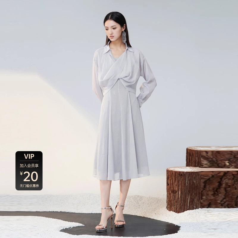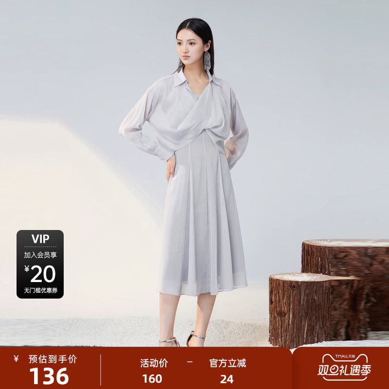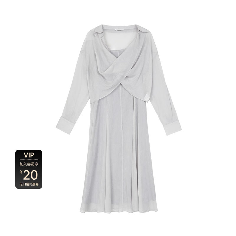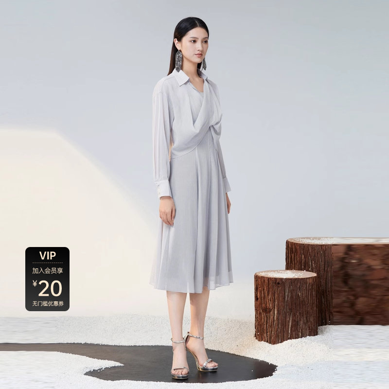 【sdeer奥莱】圣迪奥女装秋V领衬衫两件套吊带连衣裙S223Z12S8