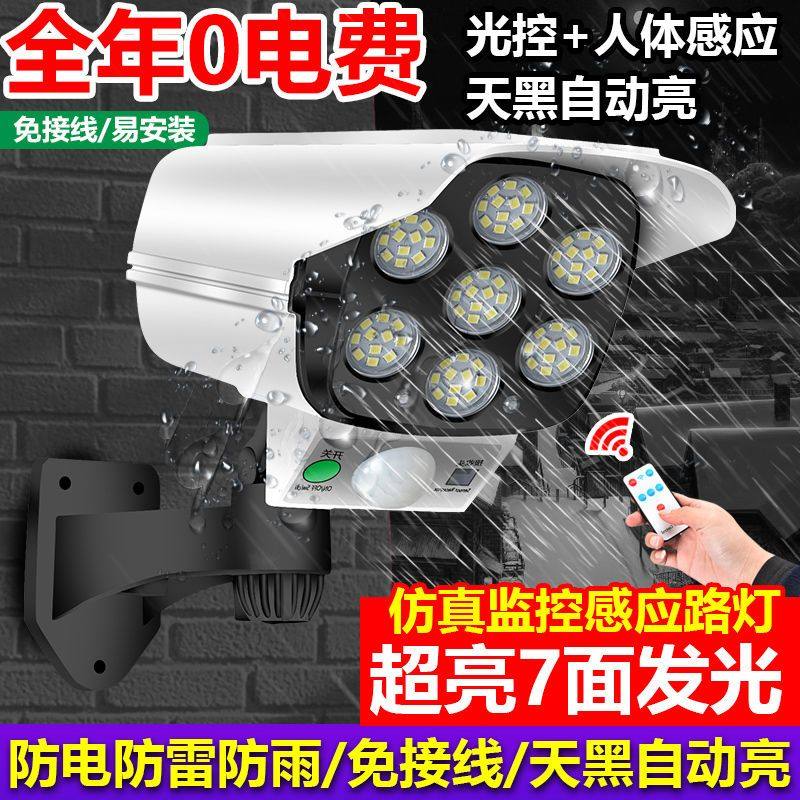 太阳能照明灯仿真监控摄像头壁灯人体感应路灯户外超亮防贼庭院灯