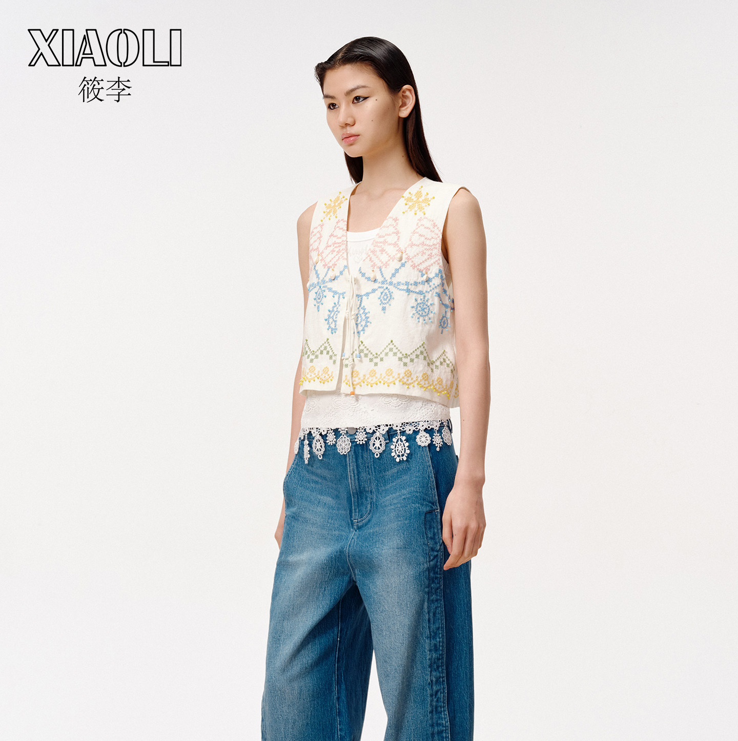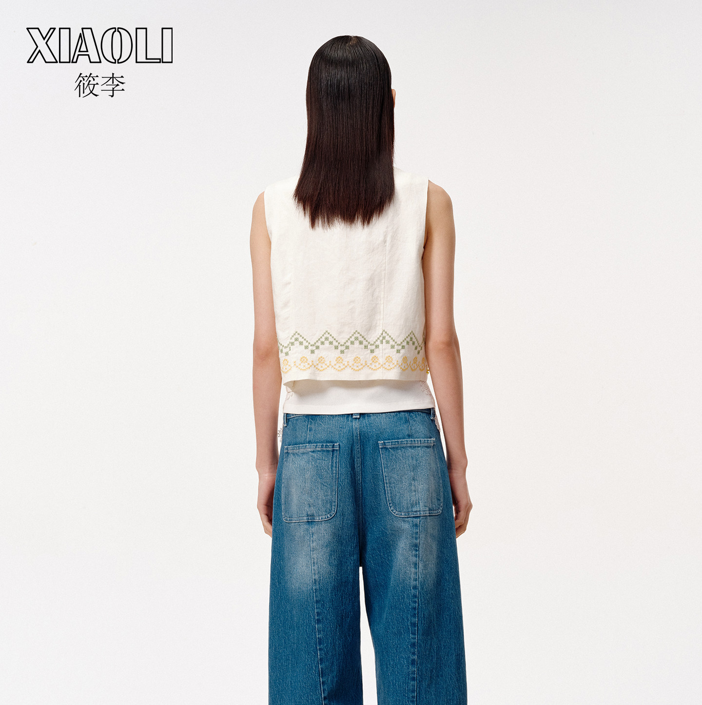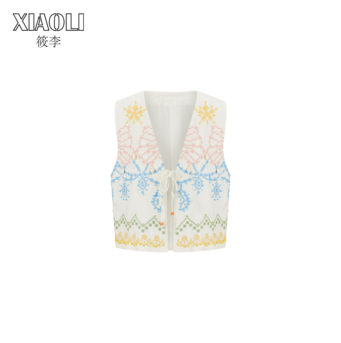 【XIAOLI筱李】度假风宽松舒适休闲白色十字绣亚麻马甲25秋新品
