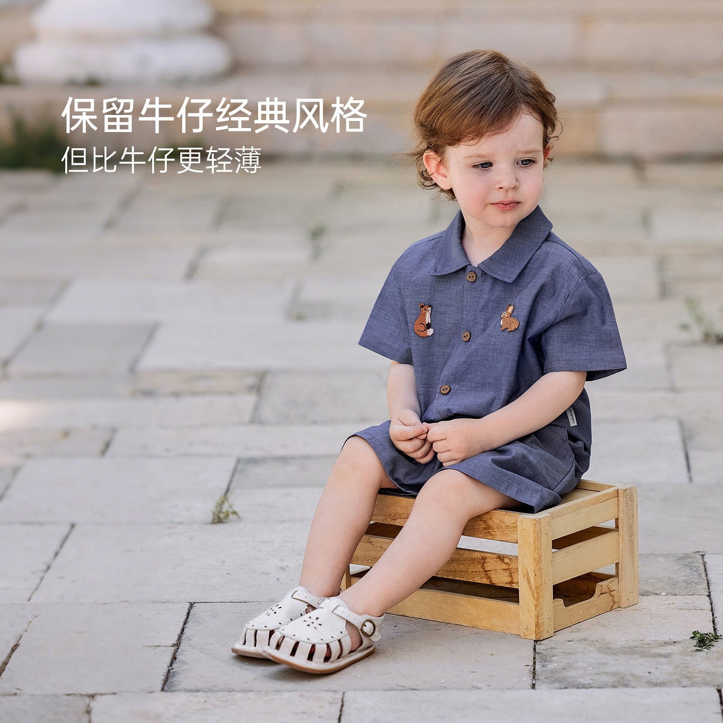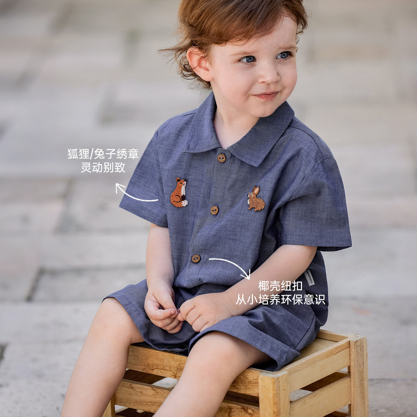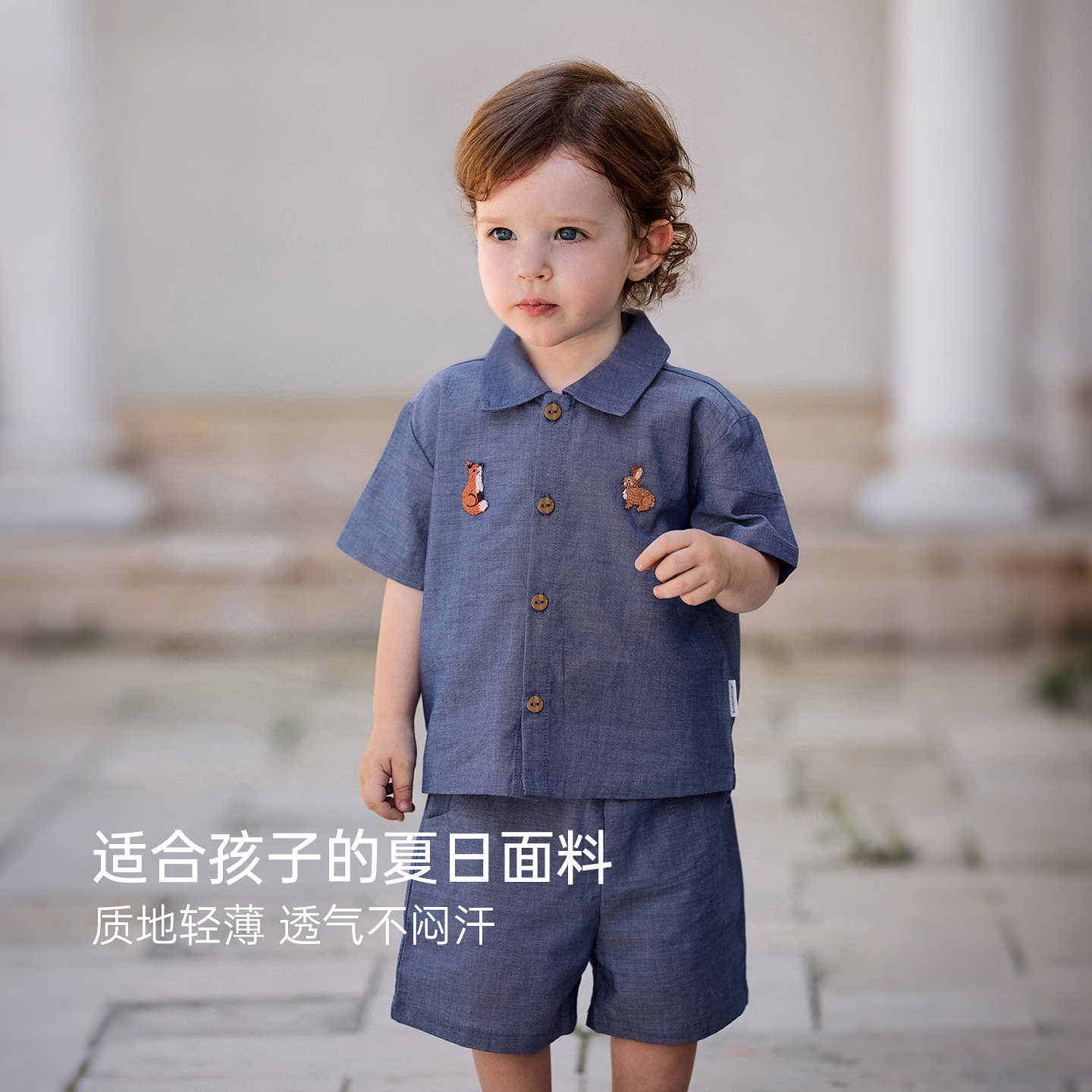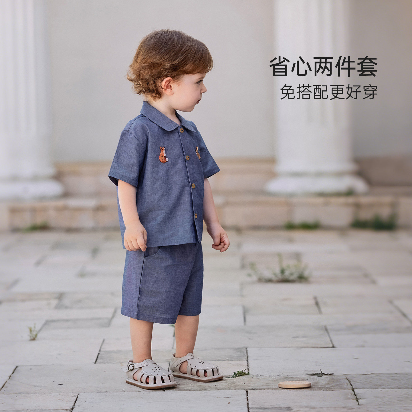 babylove宝宝短袖套装夏季薄款纯棉衬衫t恤短裤两件套休闲外出服