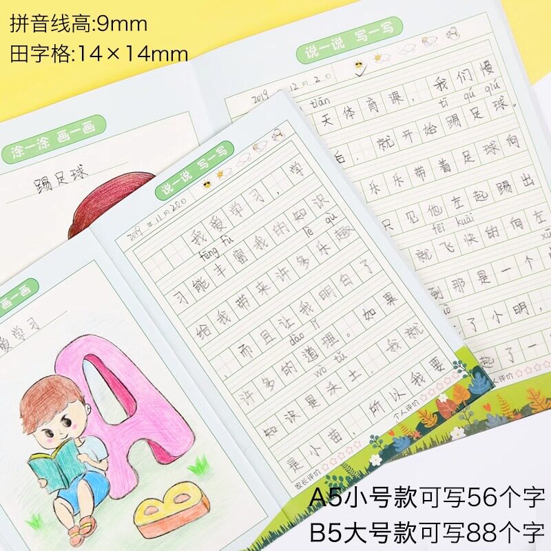 a5绘画日记本小学生一年级二三年级用带拼音田字格米字格看图写话本子周记本幼儿园儿童b5少儿画图写话作文本