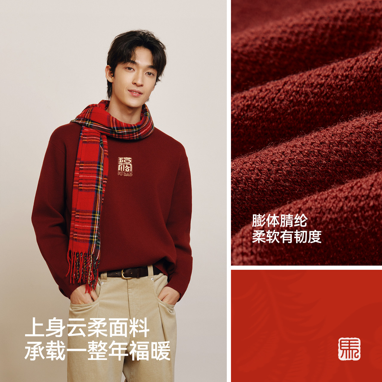 森马张仁华非遗联名毛衫男春季五福图案针织衫小宽松套头圆领毛衣