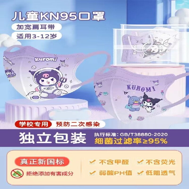 儿童卡通口罩kn95级家用防护3到12岁小孩3D立体四季通用独立包装