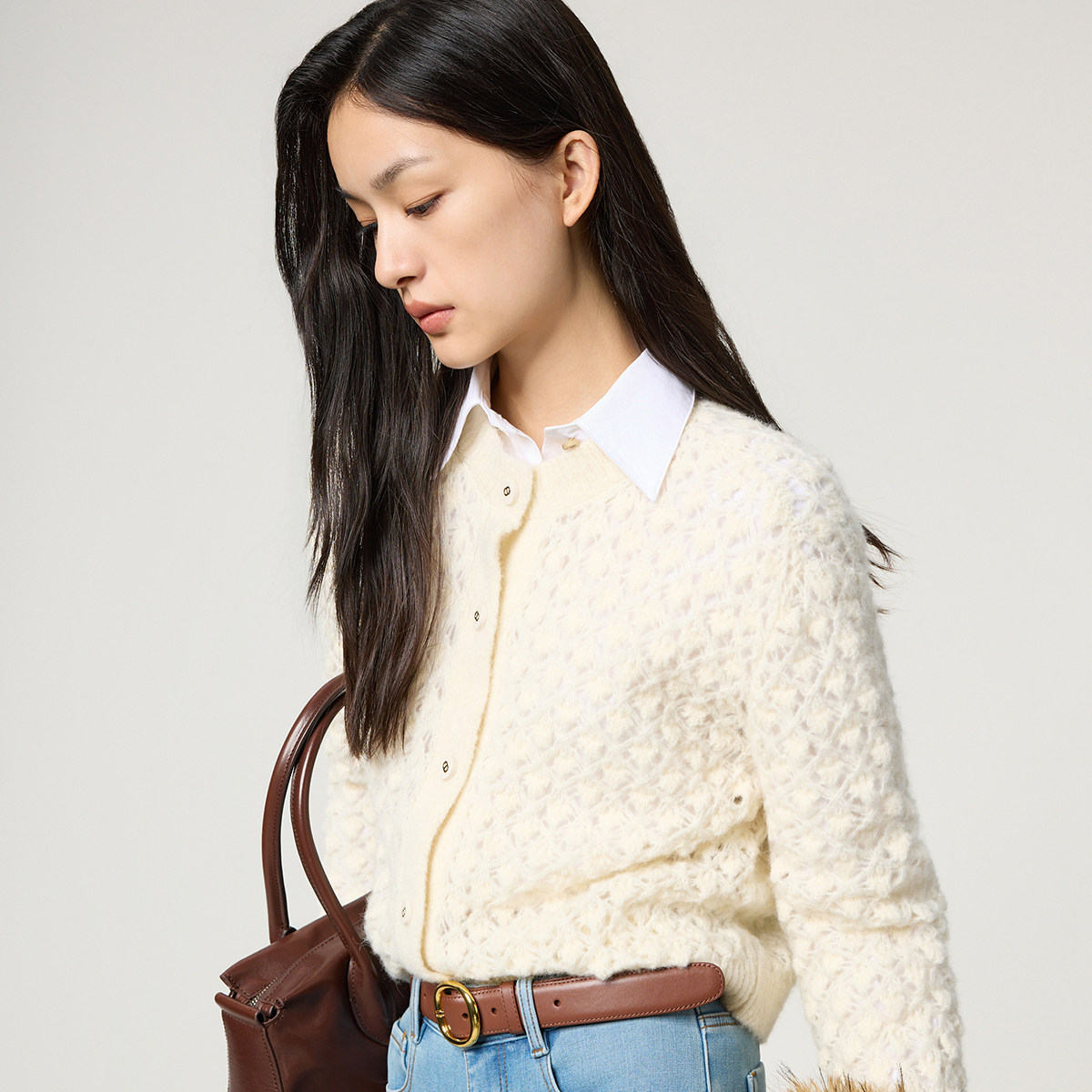 【新品】OCHIRLY欧时力 羊驼毛羊毛小香风镂空钩花针织外套2026春