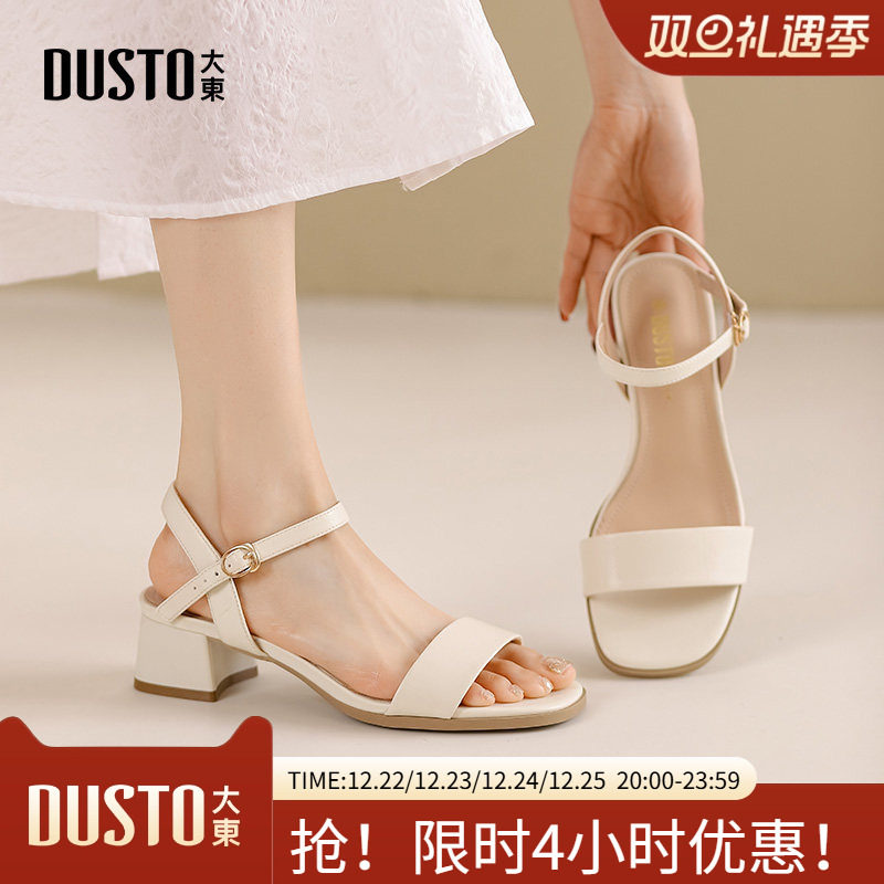 大东一字带凉鞋女鞋2025夏季新款简约粗跟中跟圆头一字扣时尚0606