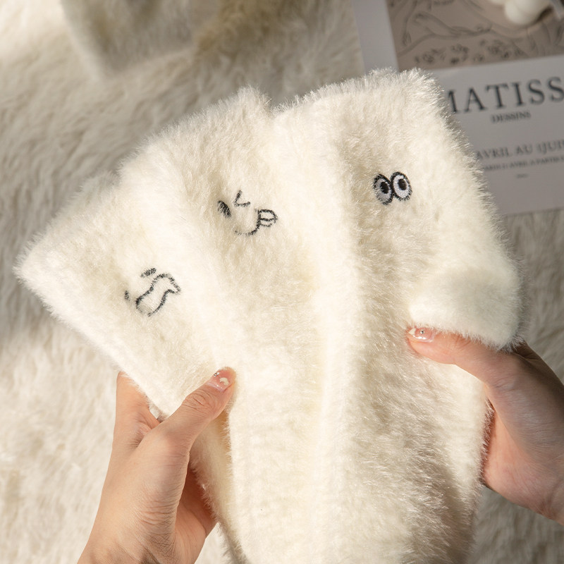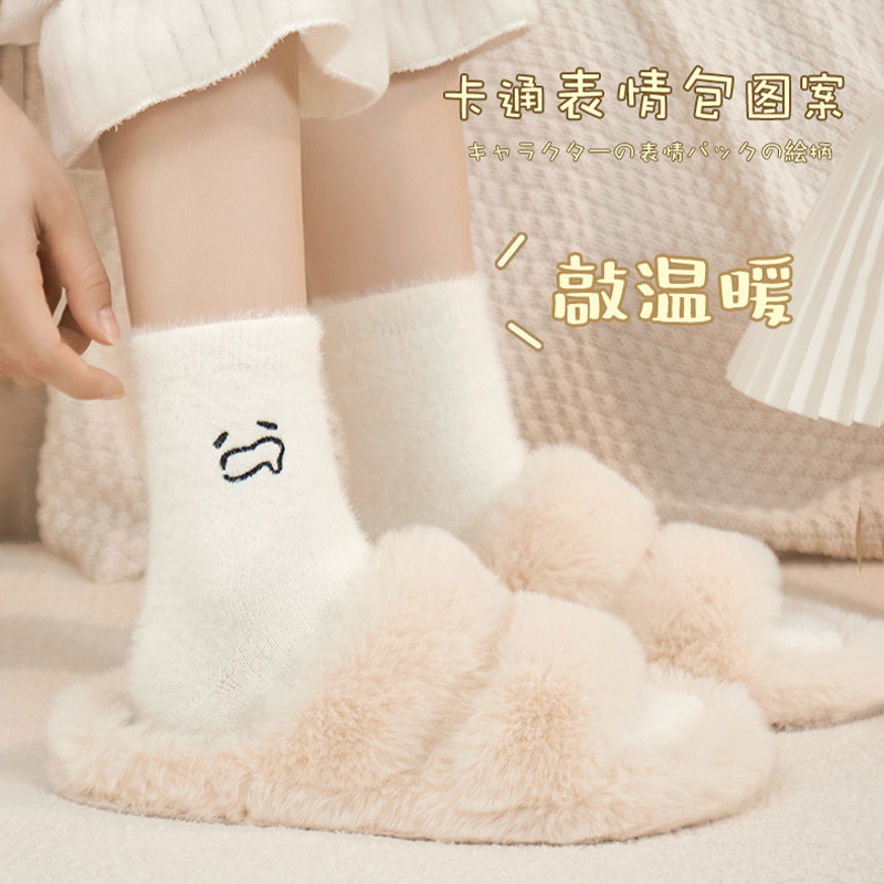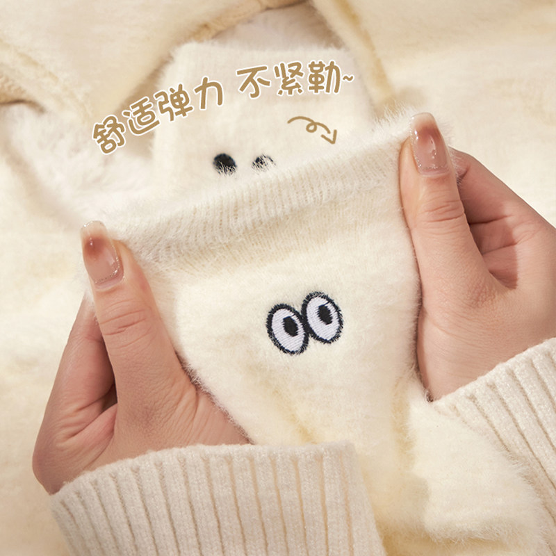 袜子女款中筒袜秋冬季加厚保暖月子袜水貂绒居家睡眠袜毛茸茸长袜