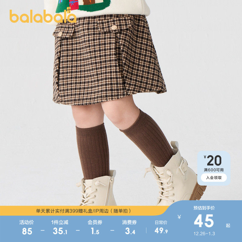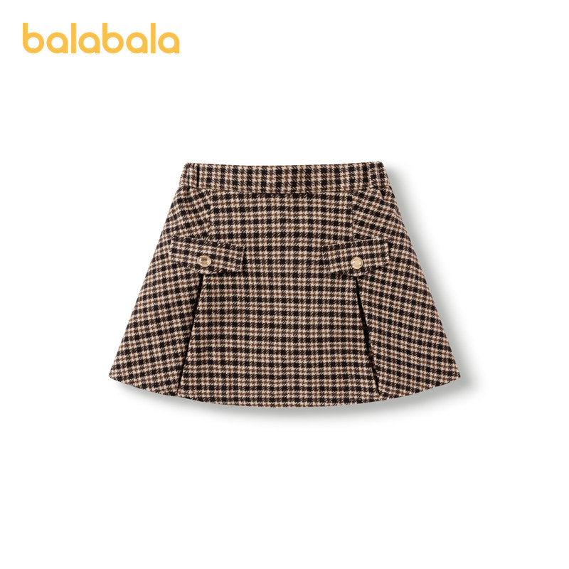 巴拉巴拉童装女童裙子儿童毛呢格子裙秋冬复古美拉德短裙洋气时尚