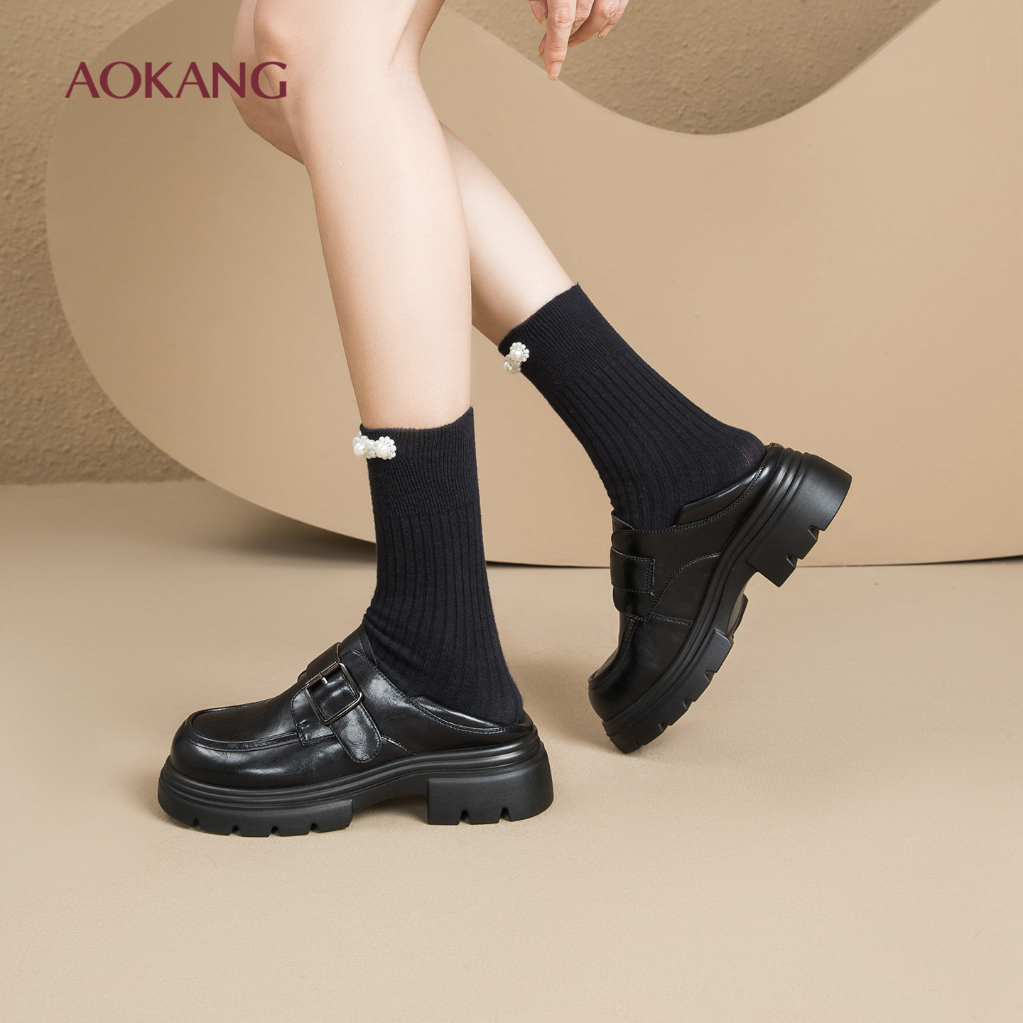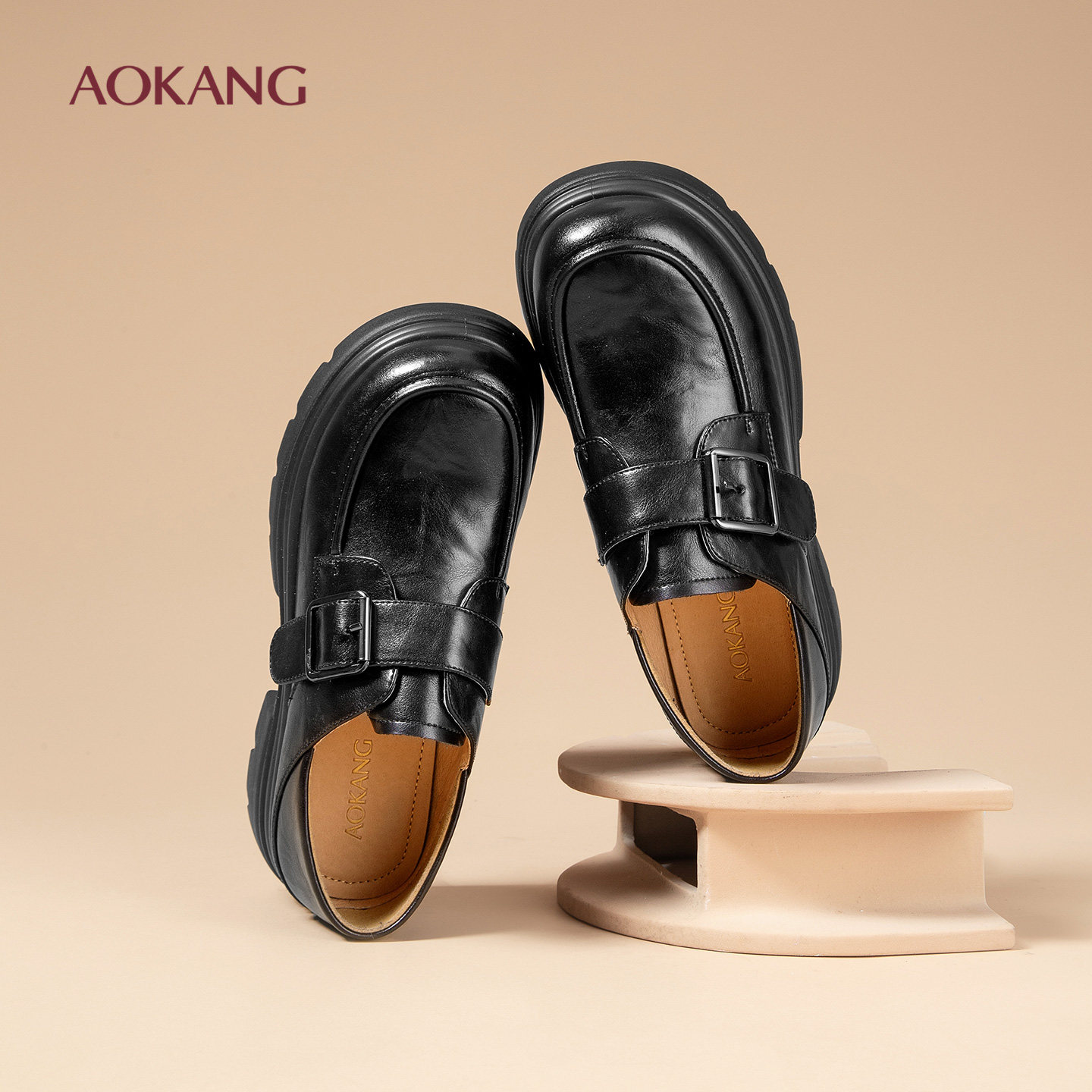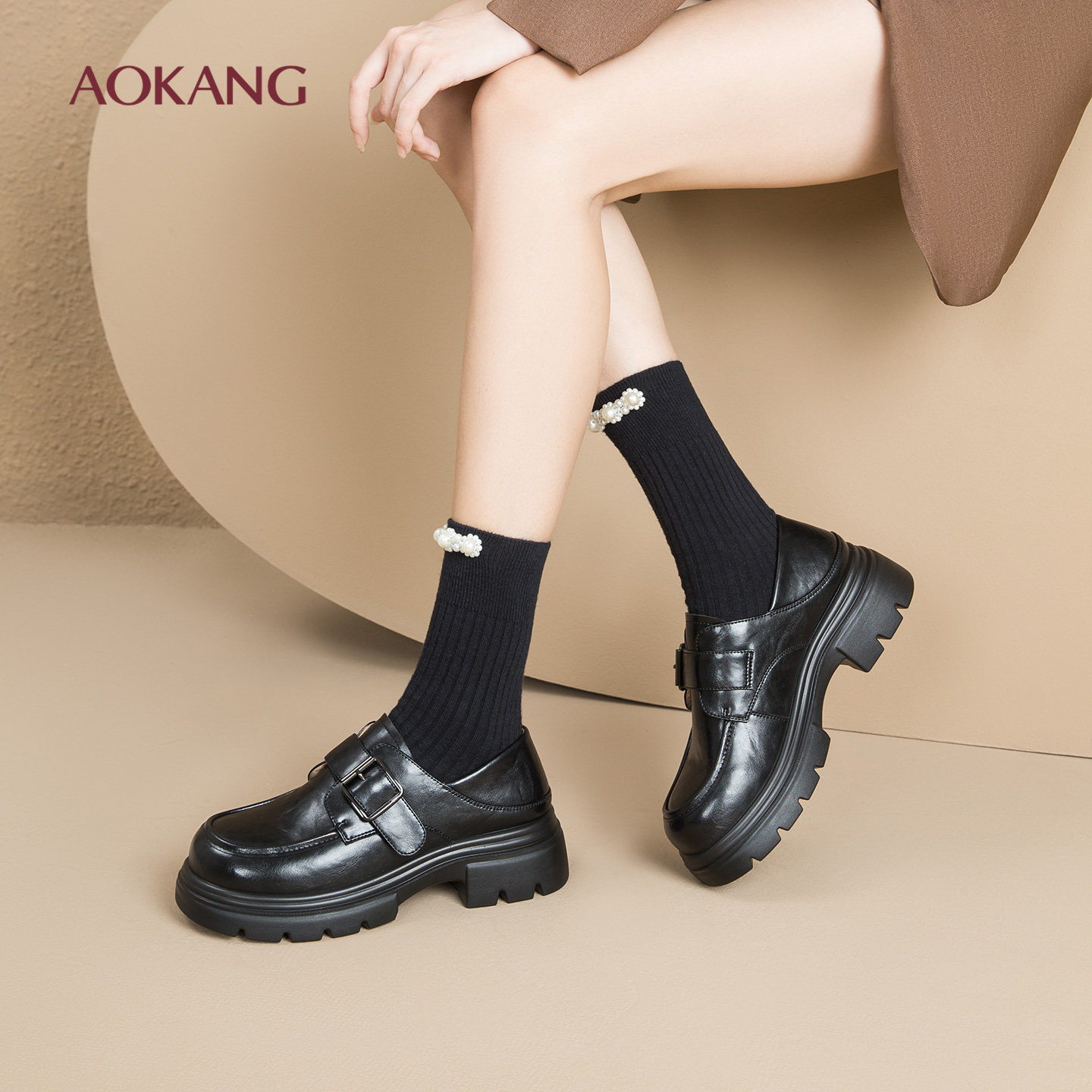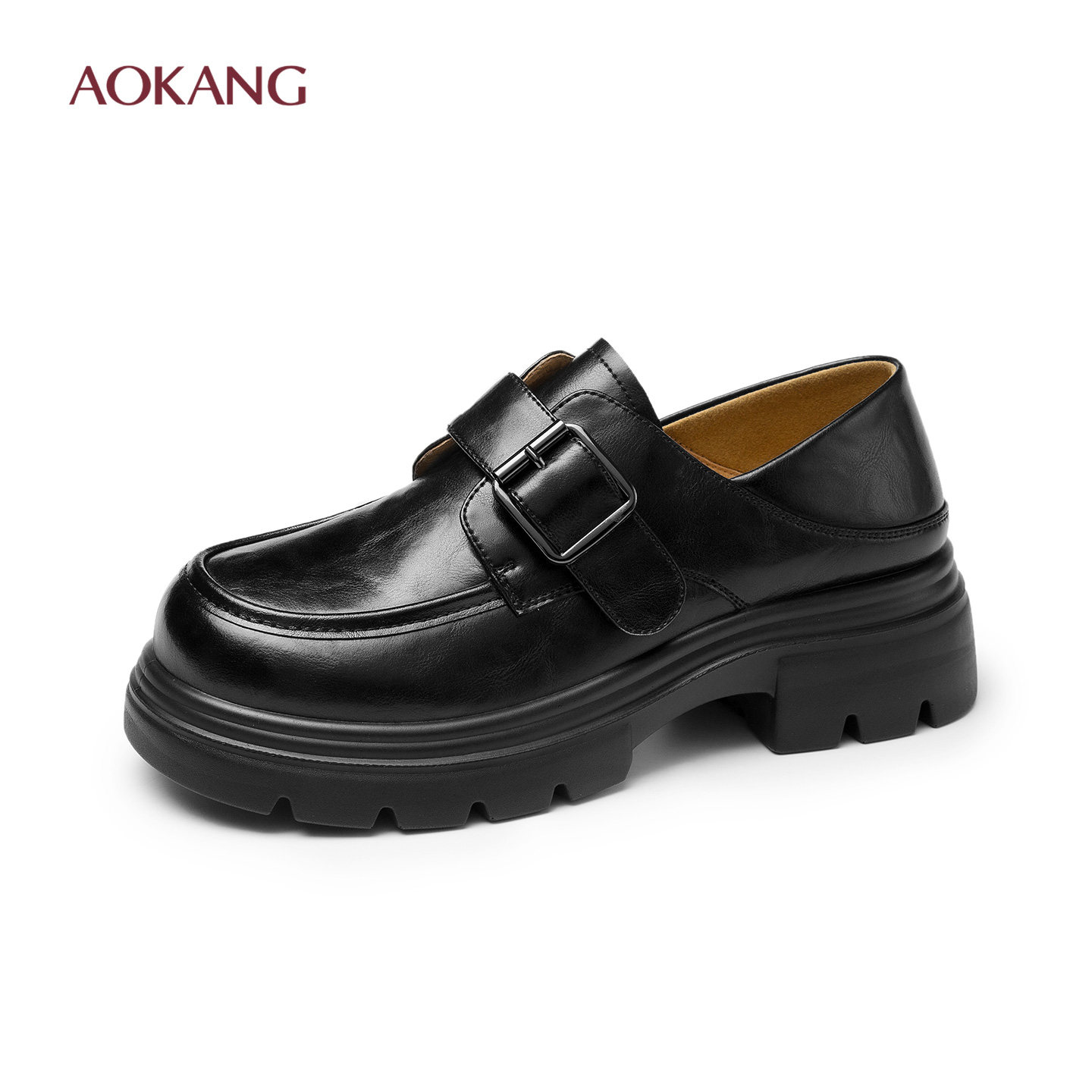 奥康 女鞋厚底乐福鞋女款2026年春季新款英伦百搭增高小皮鞋N
