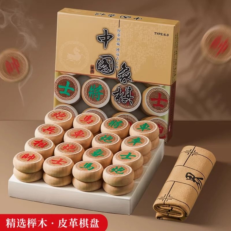 象棋中国象棋实木大号成人带棋盘榉木桦木儿童学生阳雕高档高端家