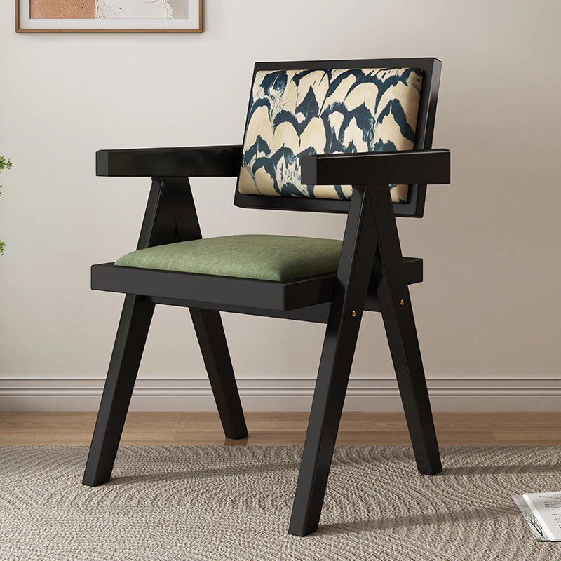 实木餐椅家用餐厅餐桌椅子2025新款软包靠背椅木头中古风吃饭凳子