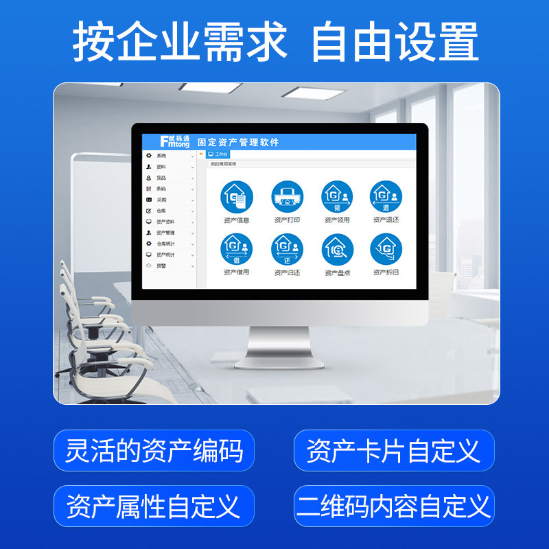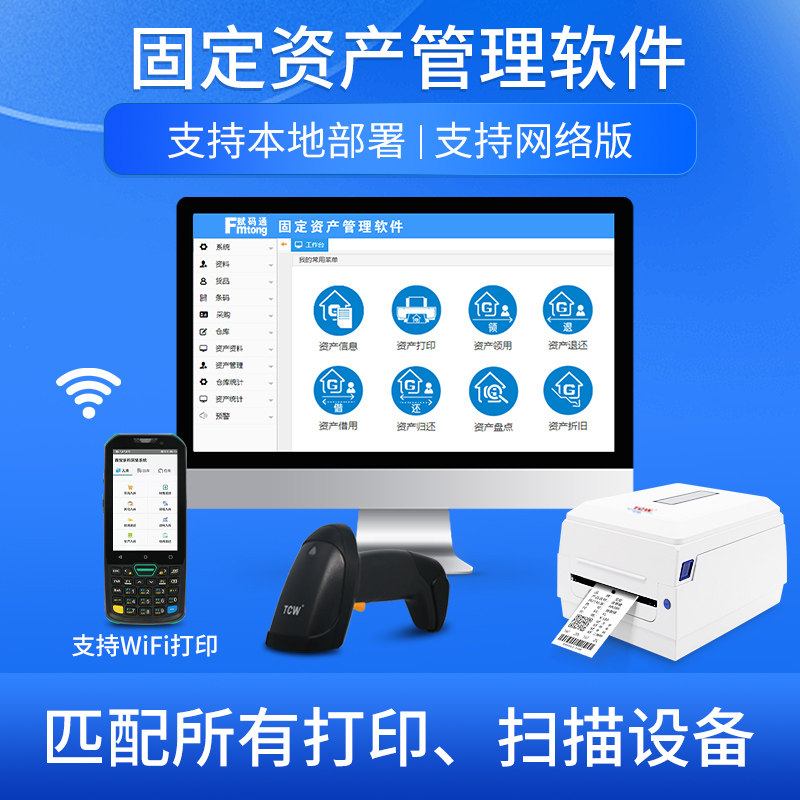 赋码通固定资产管理系统rfid国产化企业公司学校物资二维码条码文件档案设备办公用品领用归还盘点扫描软件