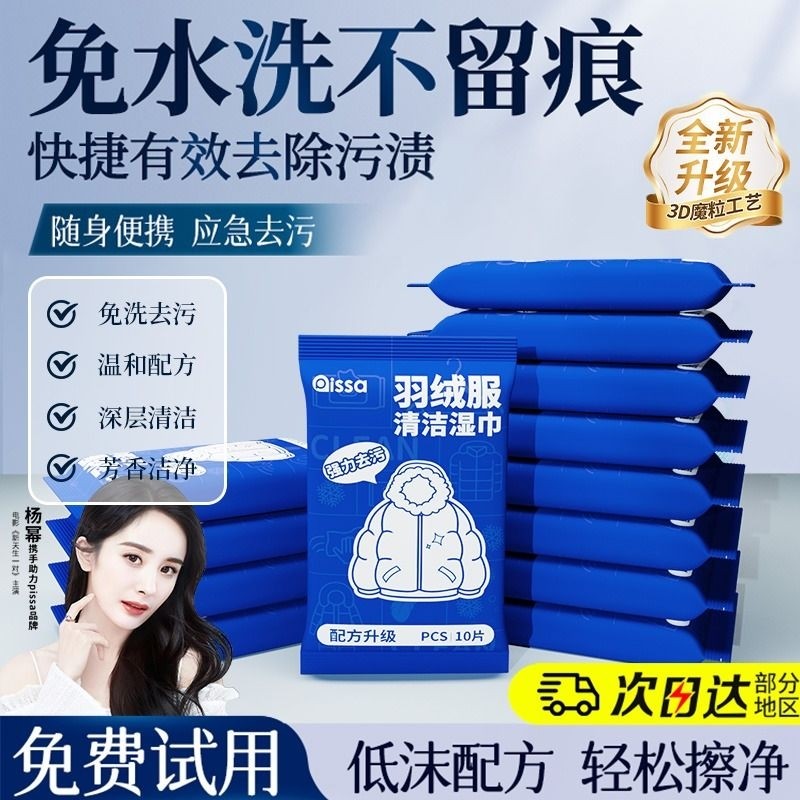 羽绒服免洗清洁湿巾冲锋衣强力去污衣物去渍湿纸巾家用去油旅行