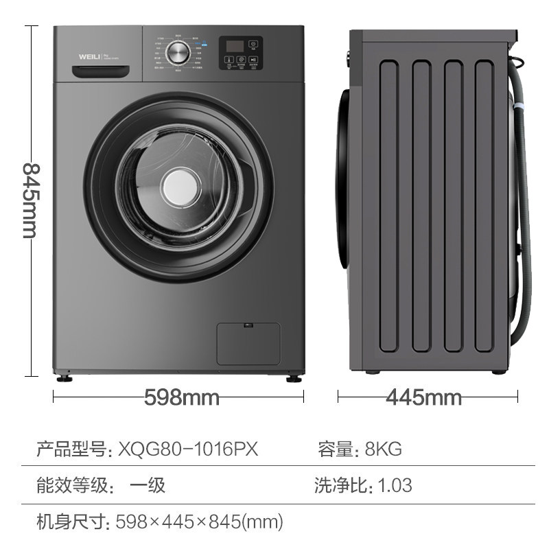 威力8/10/12公斤家用全自动变频滚筒迷你嵌入洗烘一体脱水洗衣机
