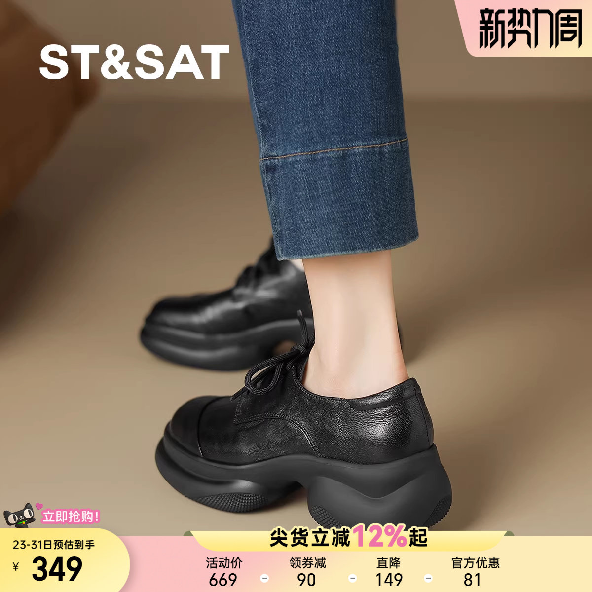 星期六新款复古系带松糕跟乐福鞋女法式厚底小皮鞋舒适软底通勤鞋