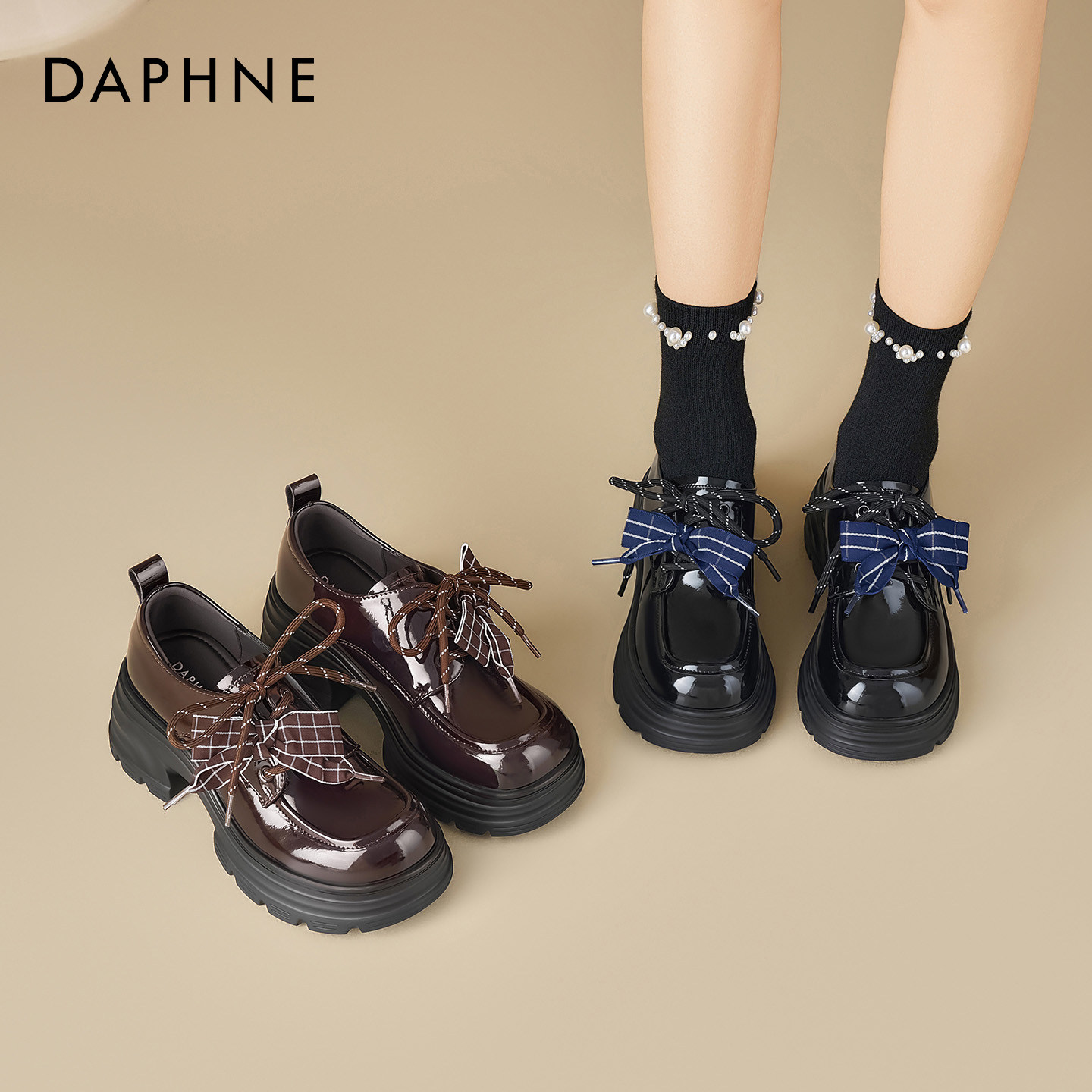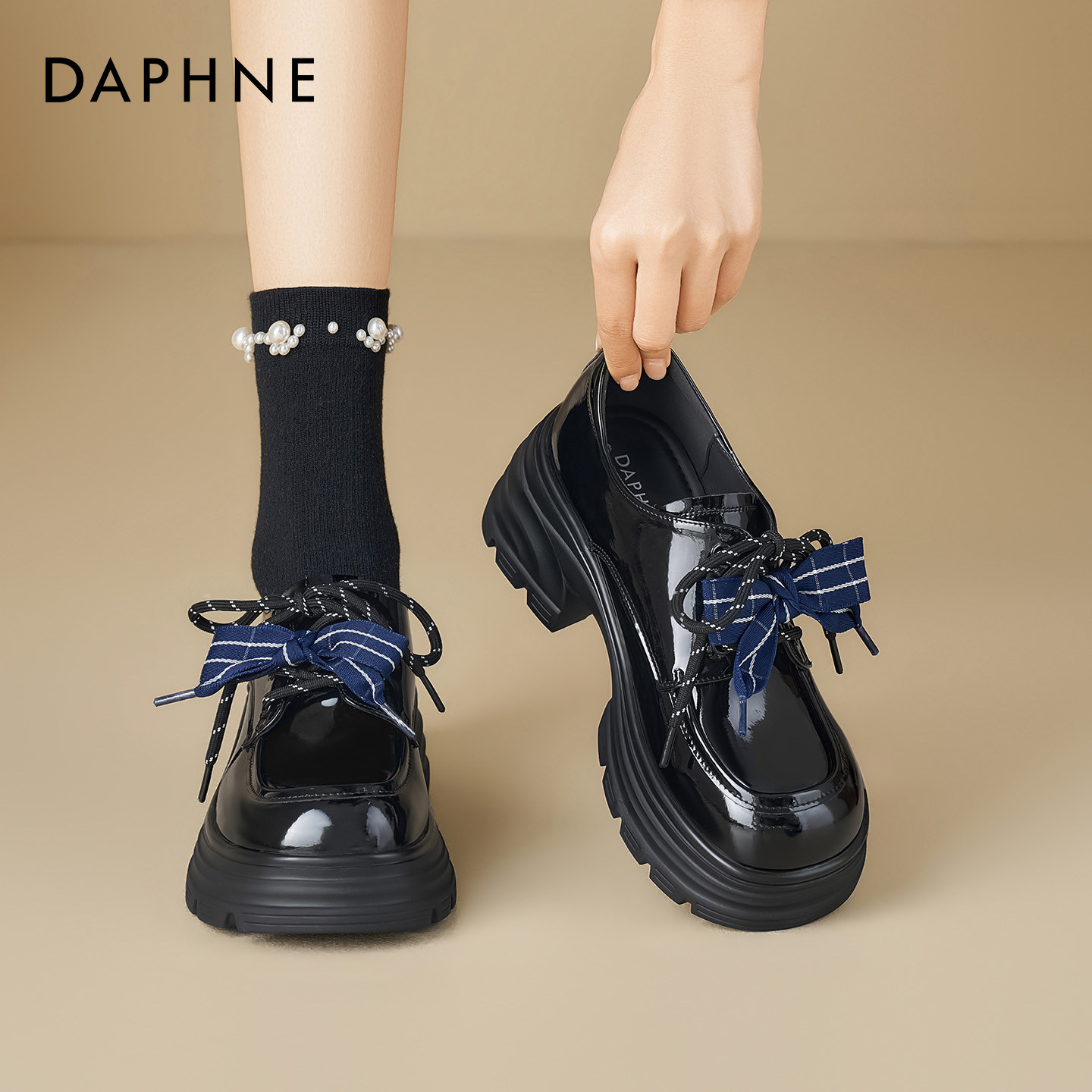 达芙妮乐福鞋女2026新款春季增高厚底松糕蝴蝶结一脚蹬黑色小皮鞋