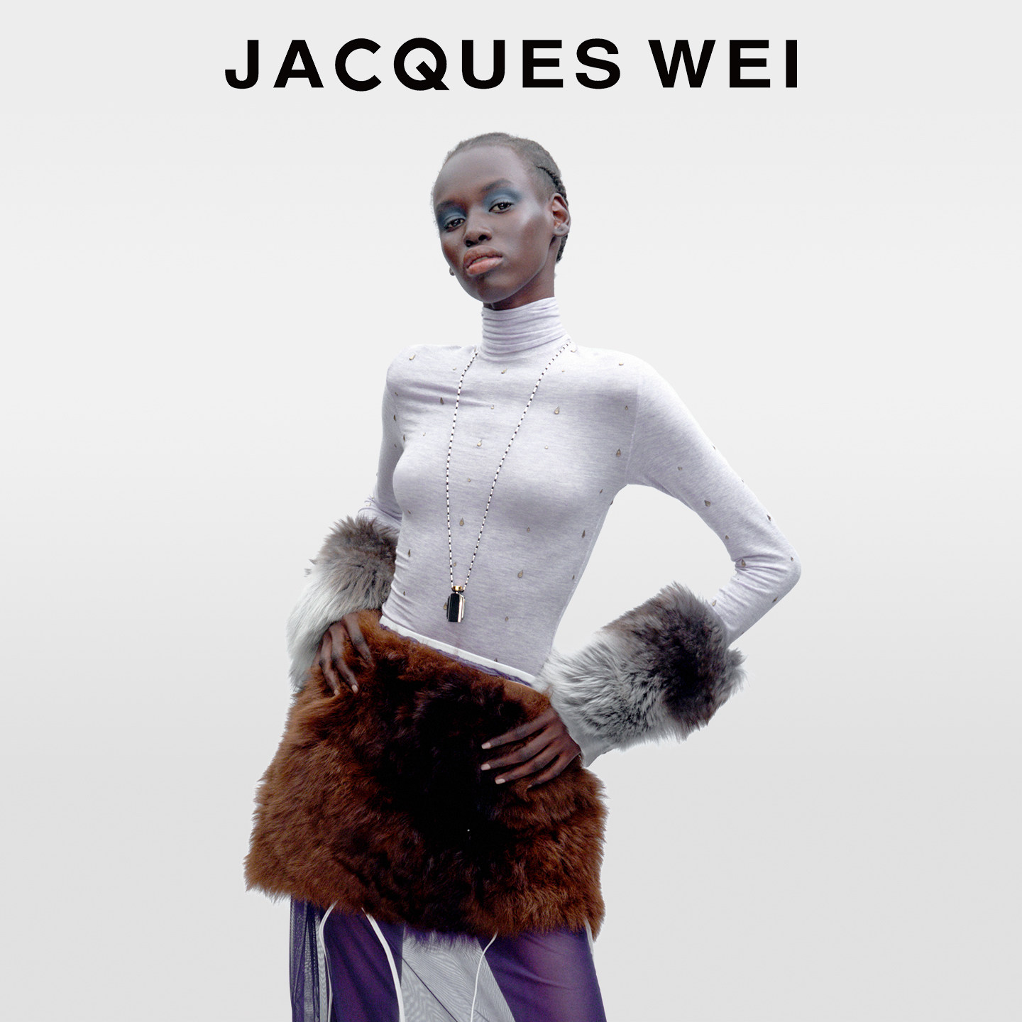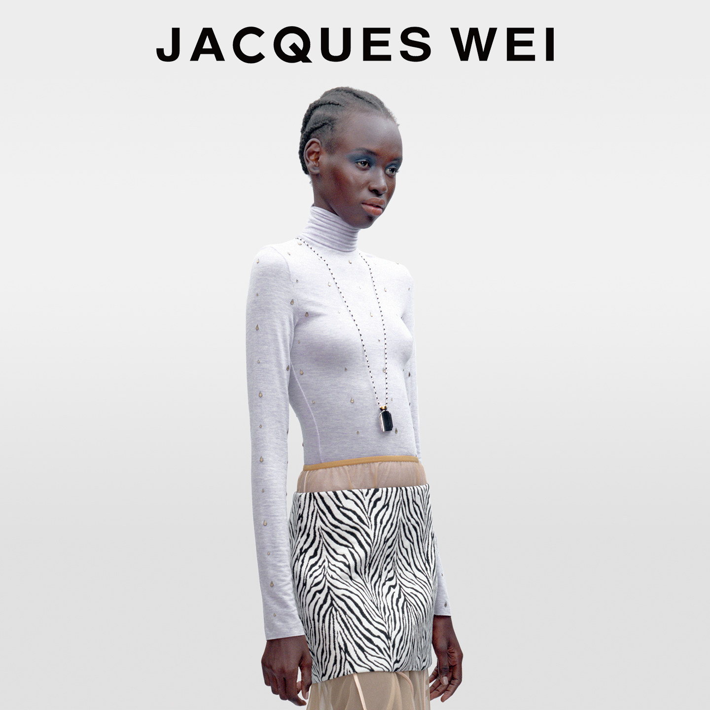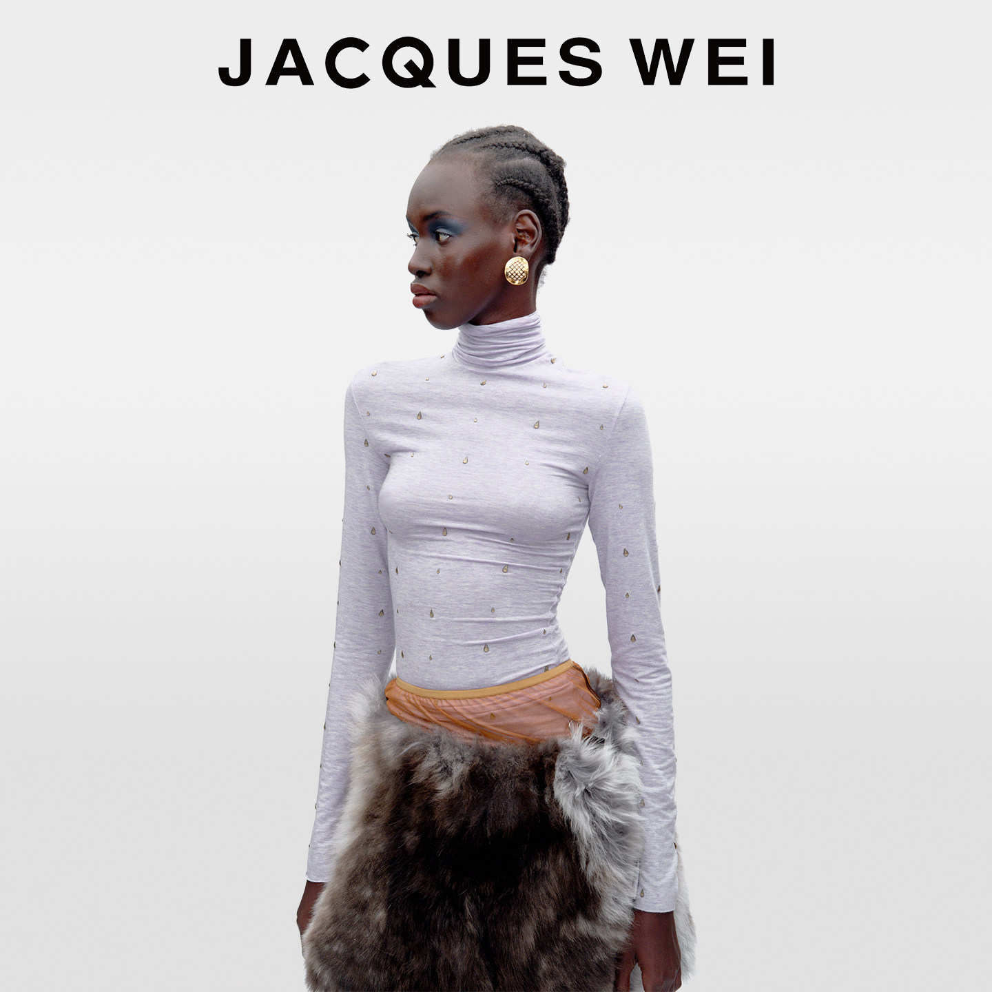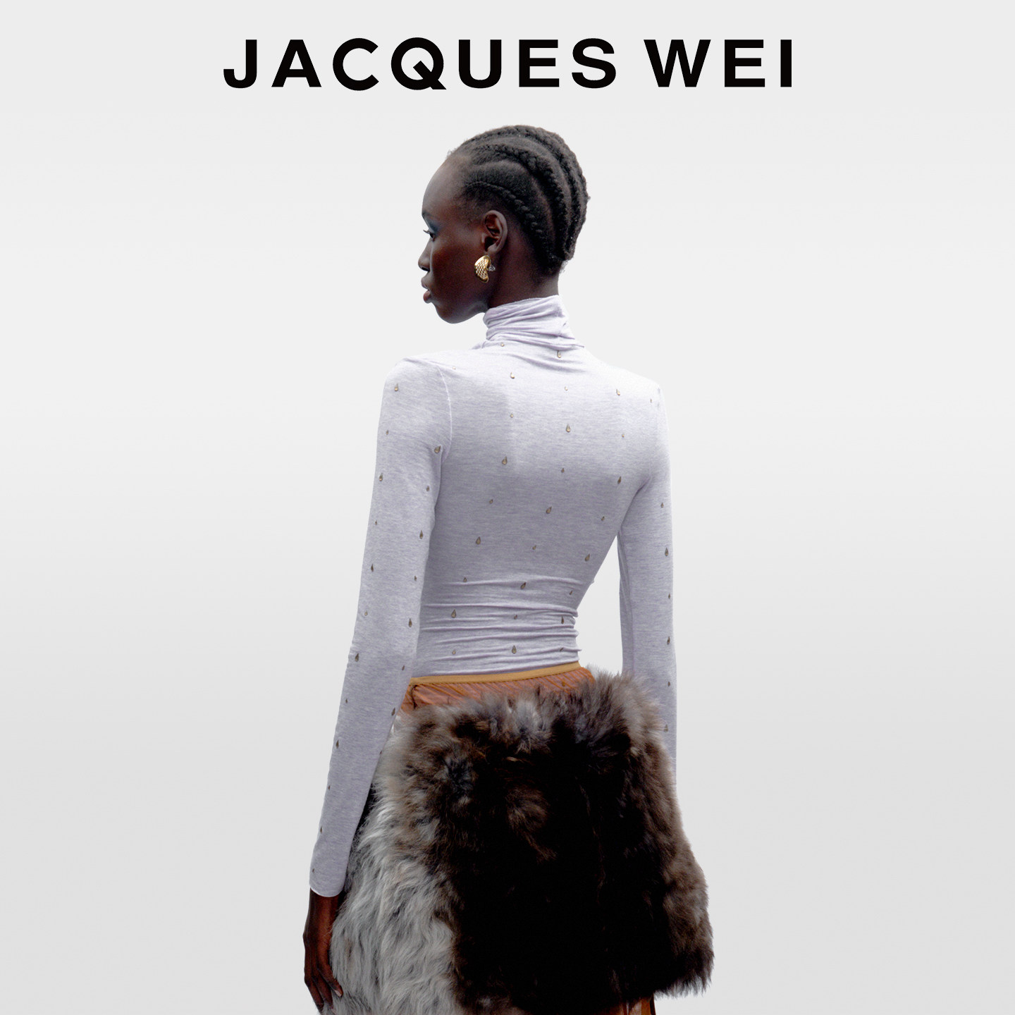 JACQUES WEI2025秋冬新款紫色烫钻内搭高领羊毛衫修身长袖上衣女