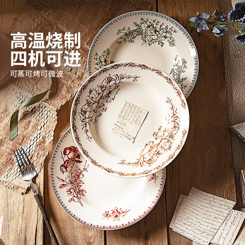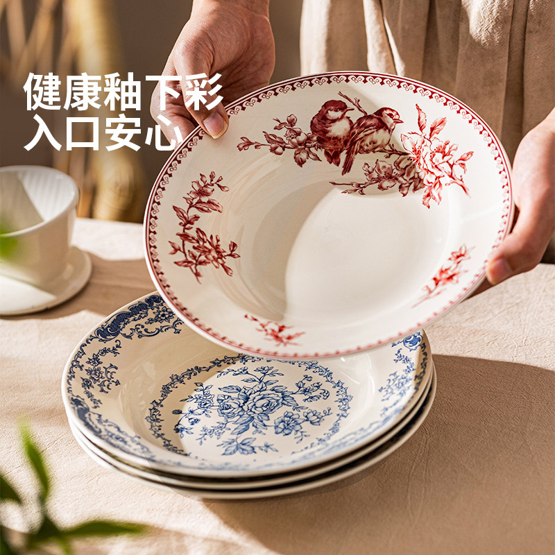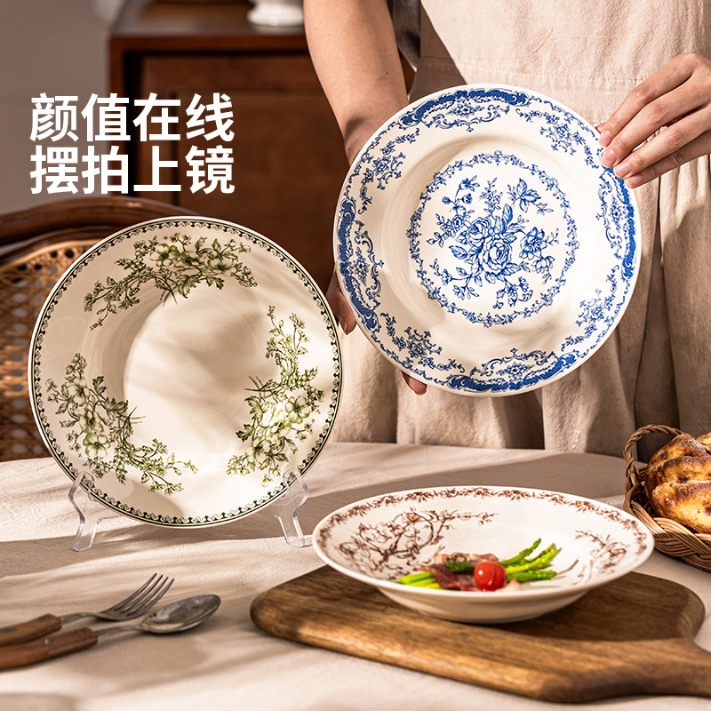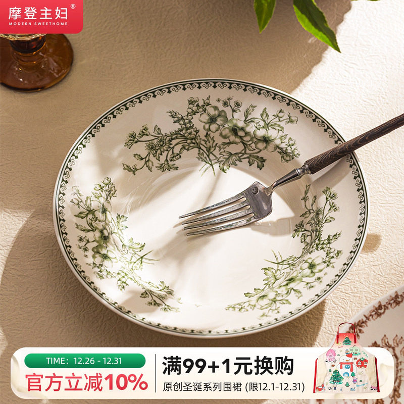 摩登主妇釉下彩盘子家用菜盘碟子高级感漂亮餐具西餐盘甜品早餐盘