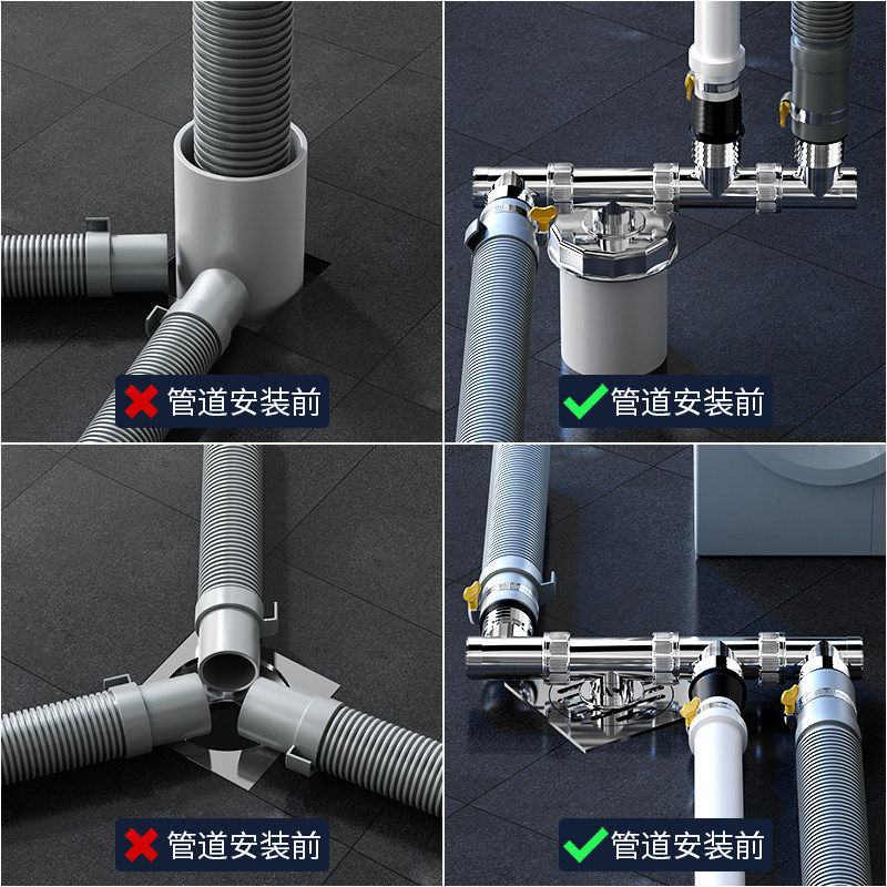 洗衣机下水止逆阀防反水下水管三头通地漏二合一排水管防溢水接头