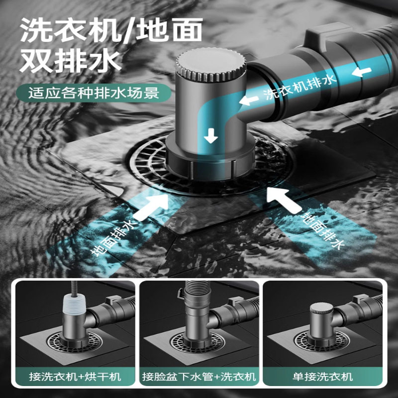 洗衣机地漏专用接头下水排水管道防反溢水二合一三通方形地漏盖子