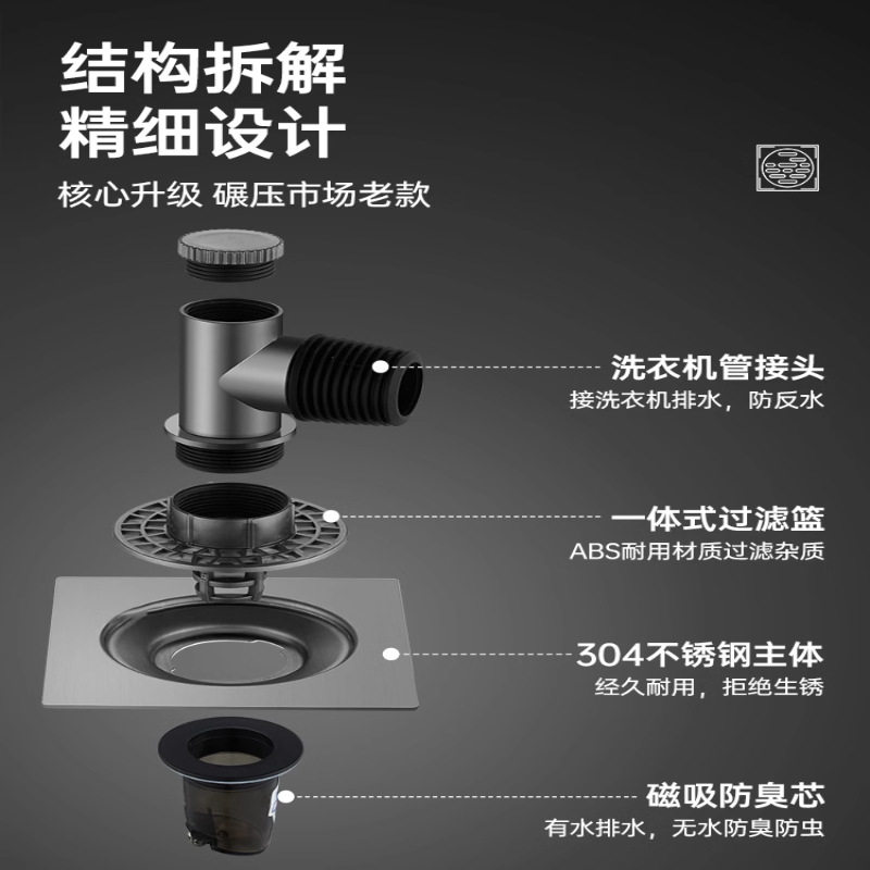 九牧卫浴旗舰店官网卫生间防臭304不锈钢地漏防虫洗衣机地漏