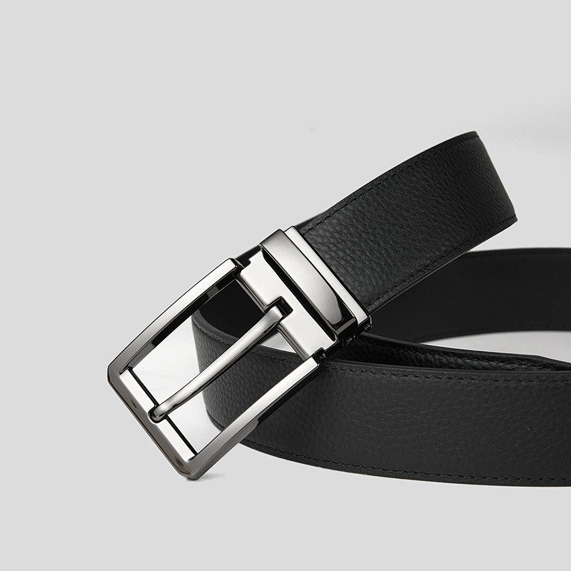 HLA/海澜之家牛皮质感皮带26新款针扣合金扣头商务绅士纯色腰带男