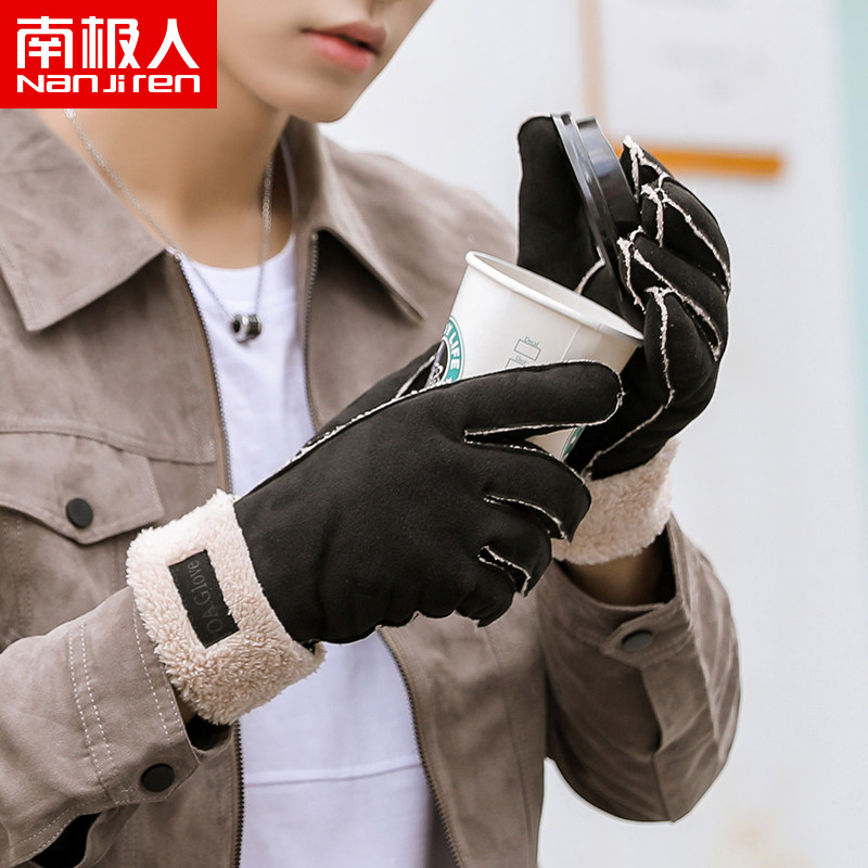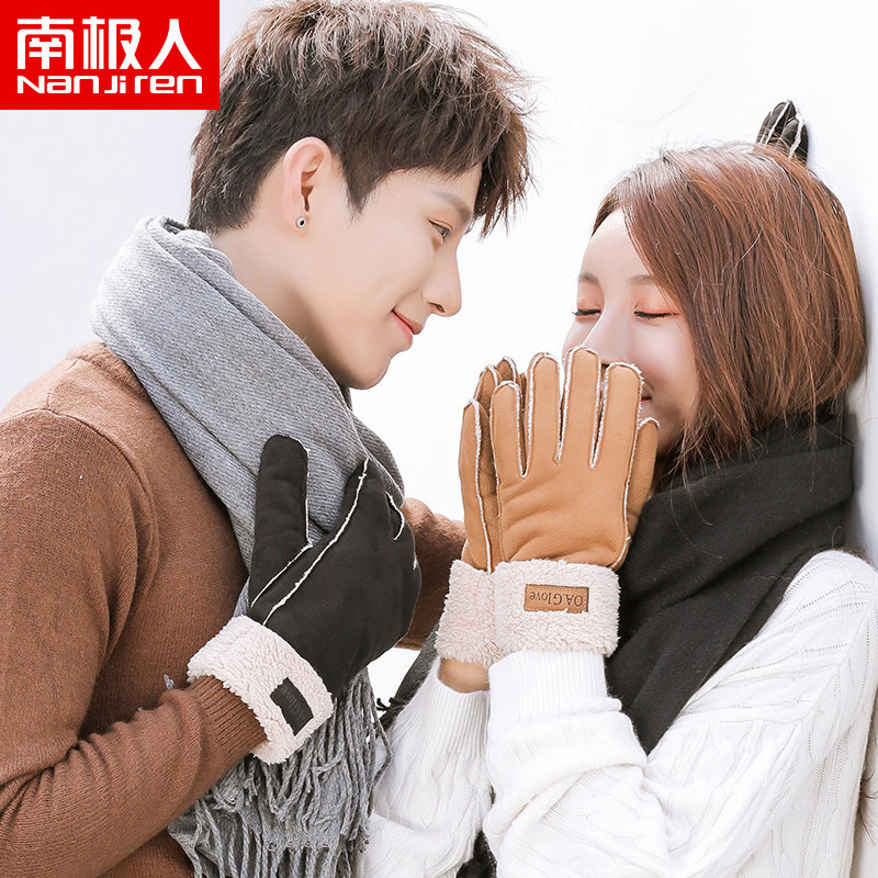 南极人秋季麂皮绒保暖手套冬天女加绒厚纯色学生骑行御寒滑雪男Z