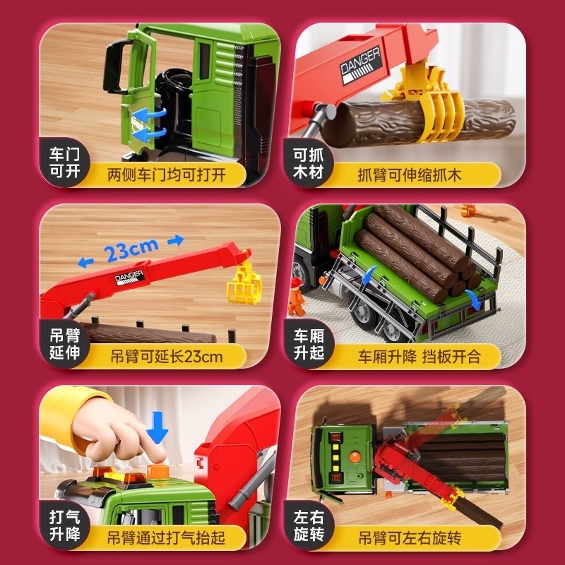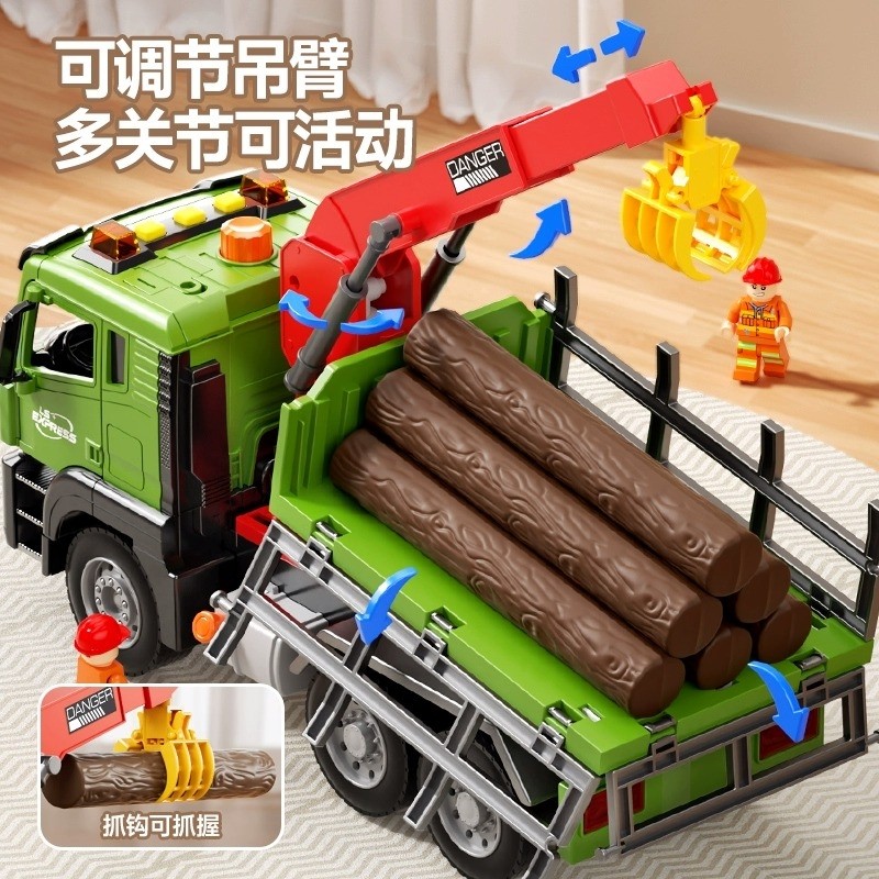 儿童抓木机工程车玩具男孩抓木头的木材货车吊车拖车2025新款合金