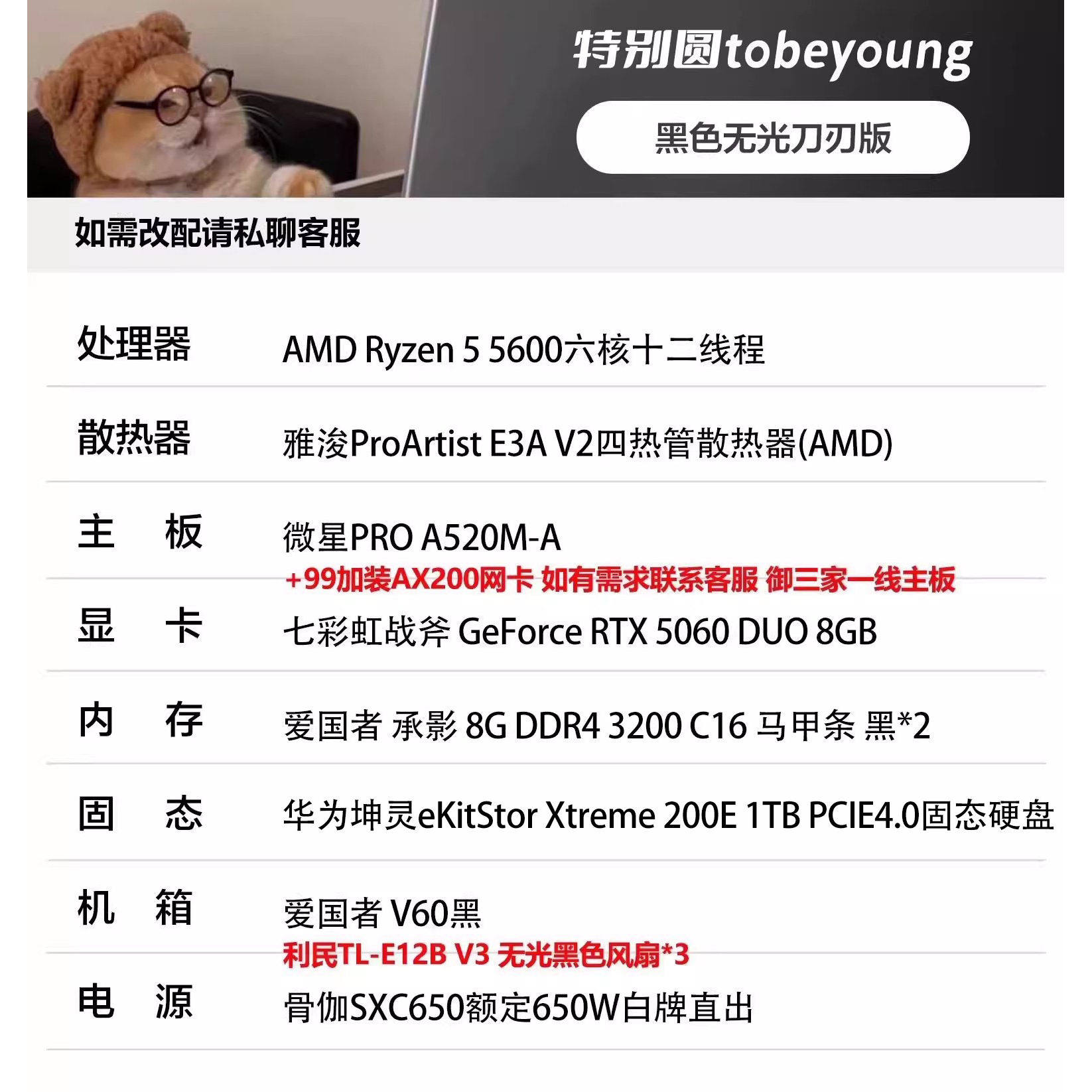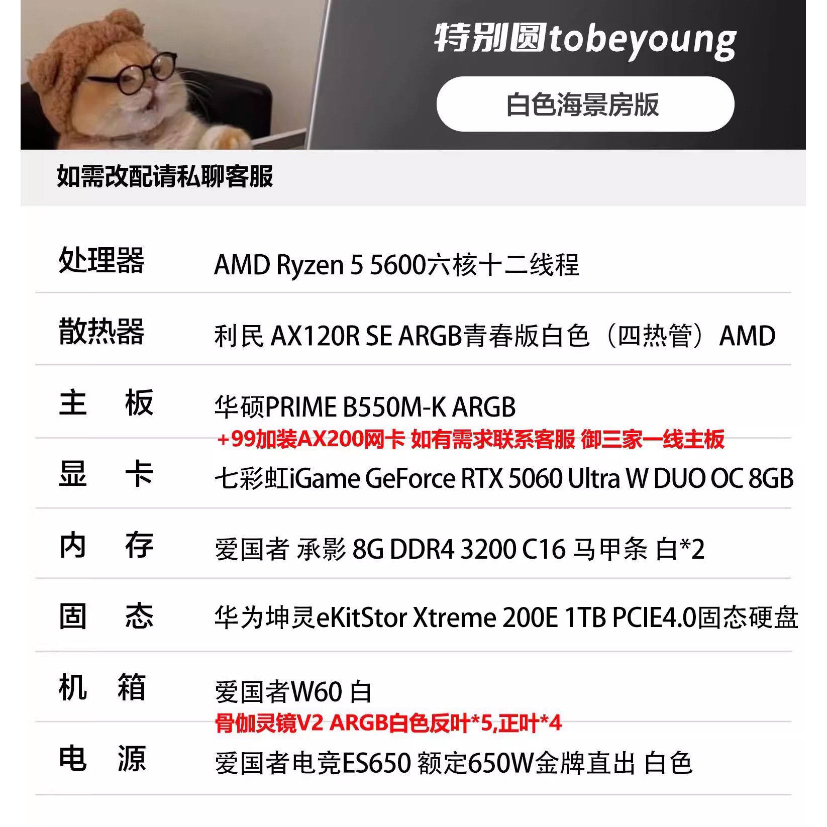 5000元纯白ARGB海景房 R5 5600 RTX5060 DIY游戏主机电脑