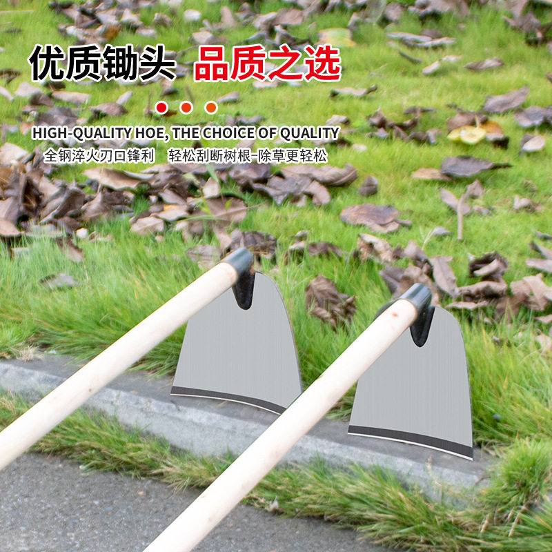 除草锄全钢锄头农用锄草铲锄头种菜家用户外木柄锄加厚长柄开荒翻