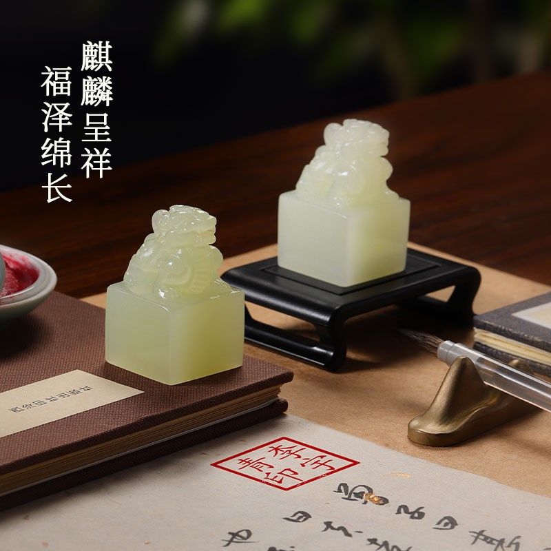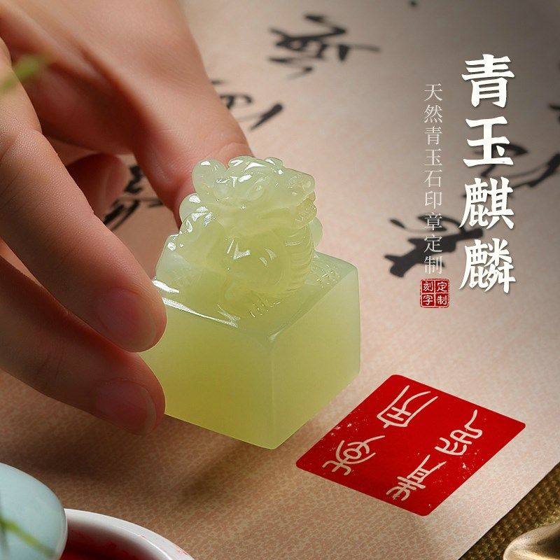 姓名印章名字定制麒麟青玉石印章天然石料刻字印章个人私章篆刻方