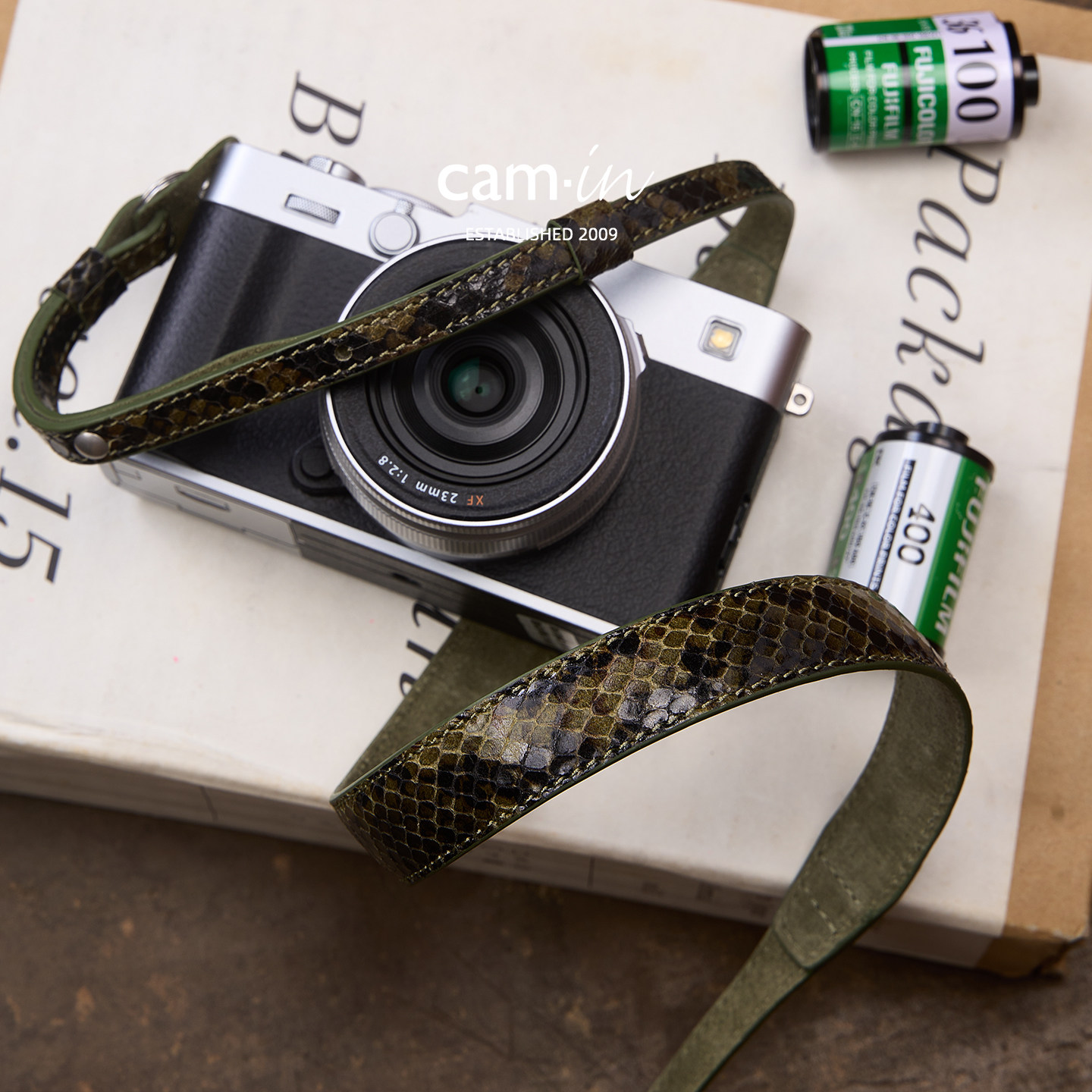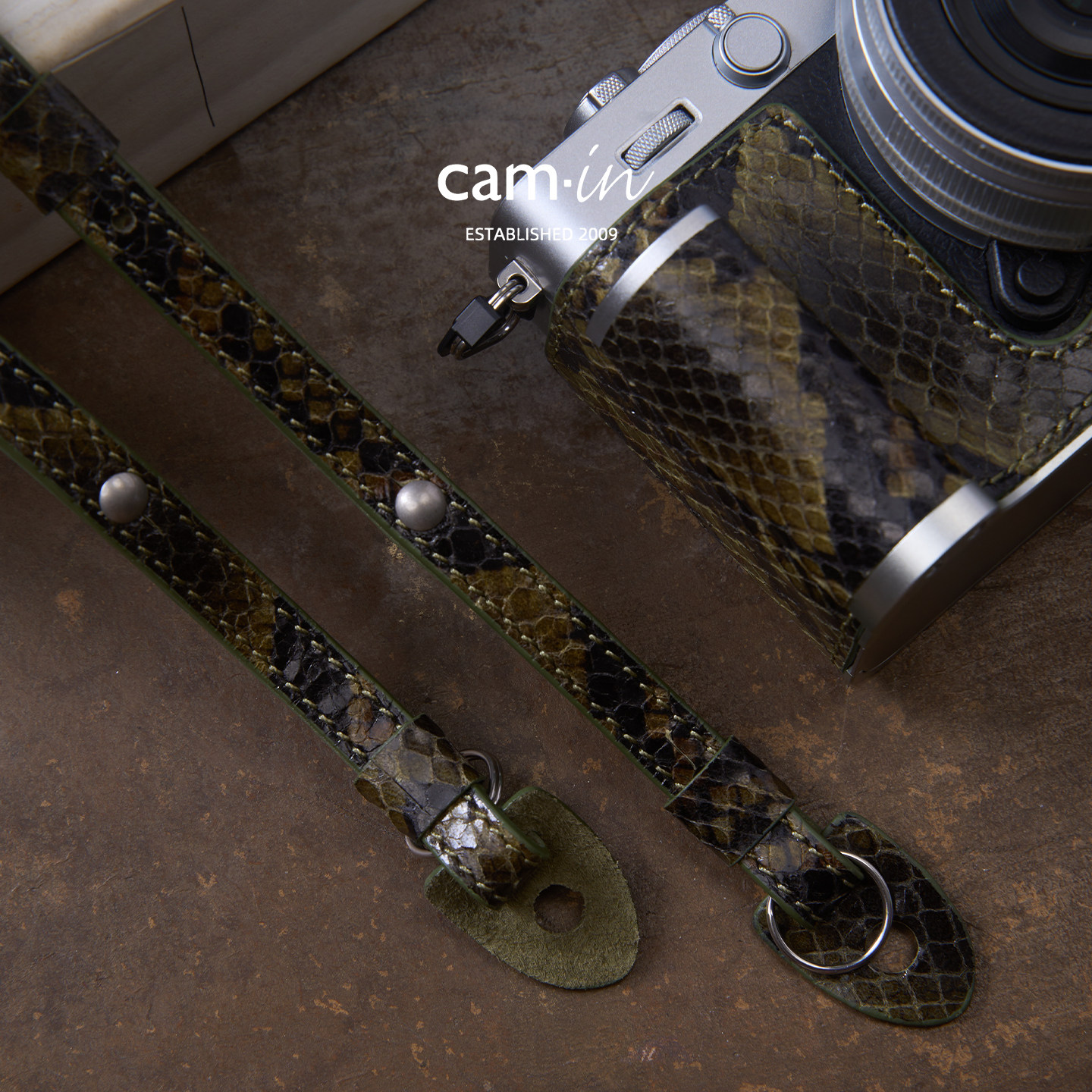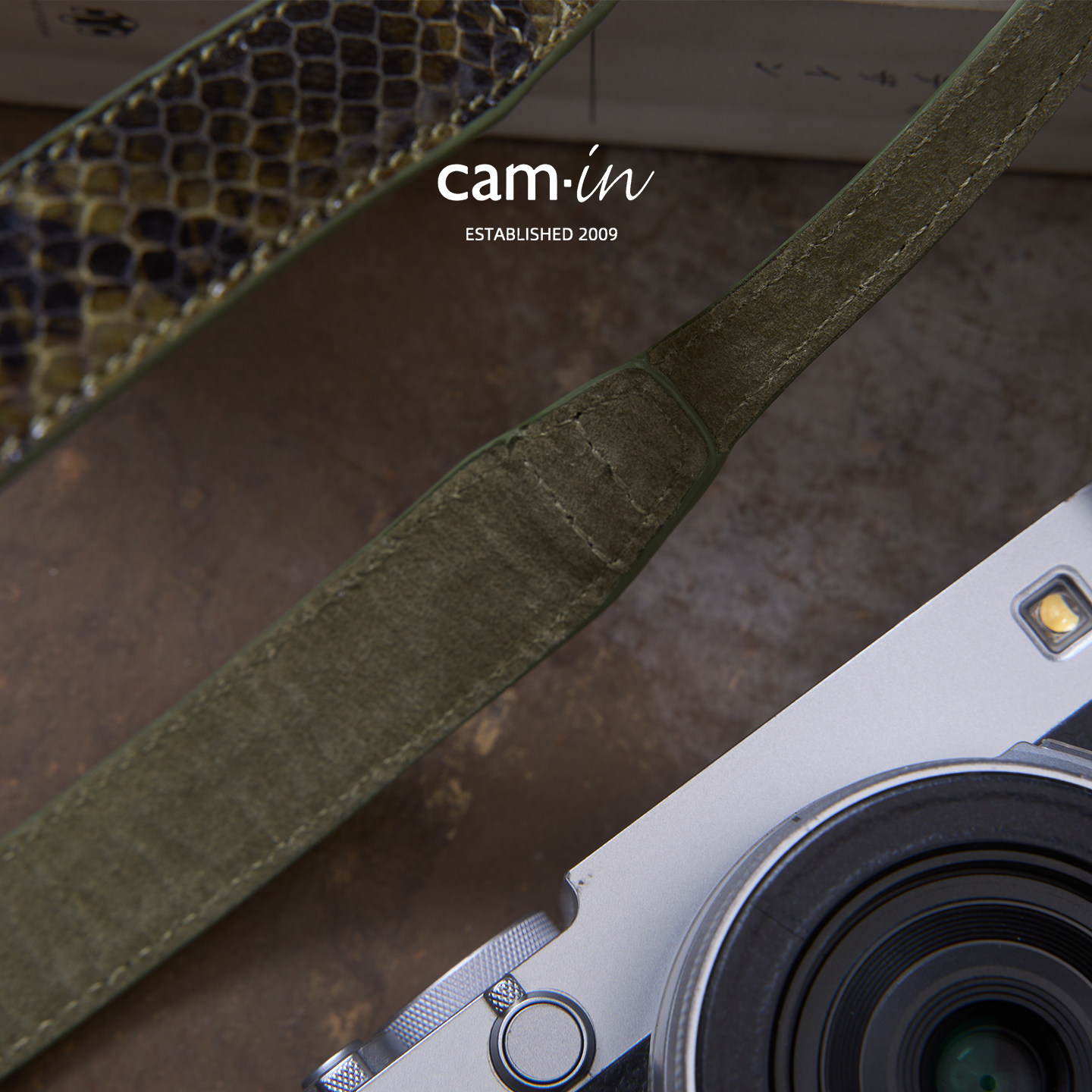 cam-in意大利蛇纹牛皮真皮手工相机背带通用牛皮可调节肩带斜挎带