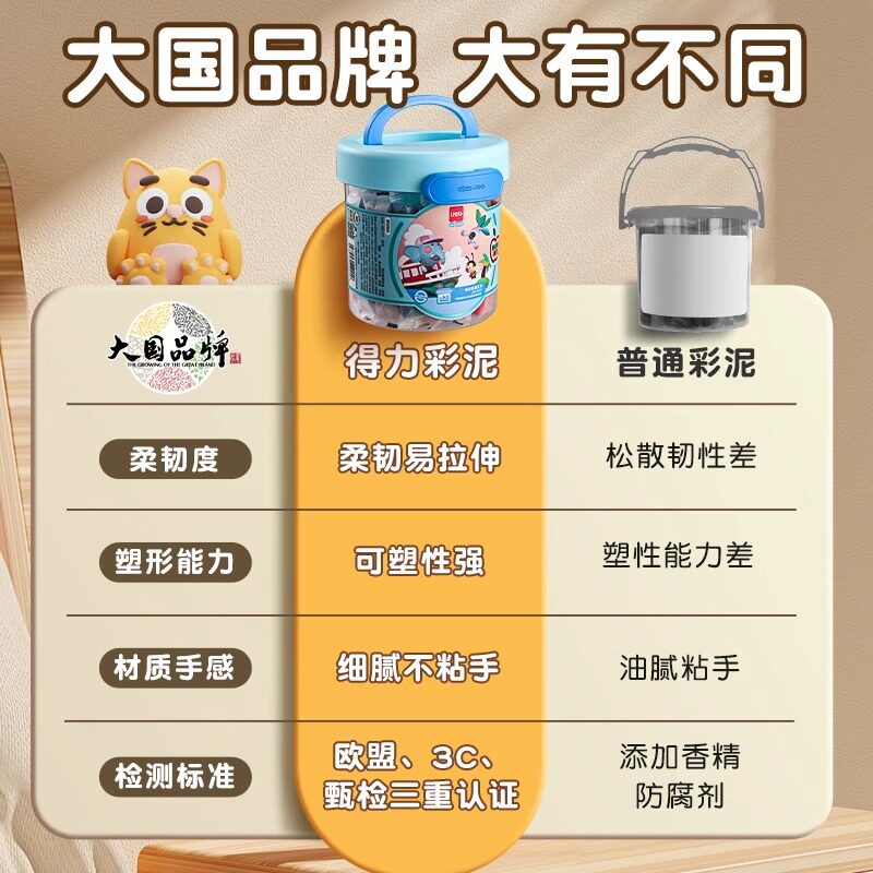 得力橡皮泥食品级大容量儿童安全无毒三原色彩泥不粘手幼儿园专用diy手工粘土无味大包补充装白黏土玩具套装