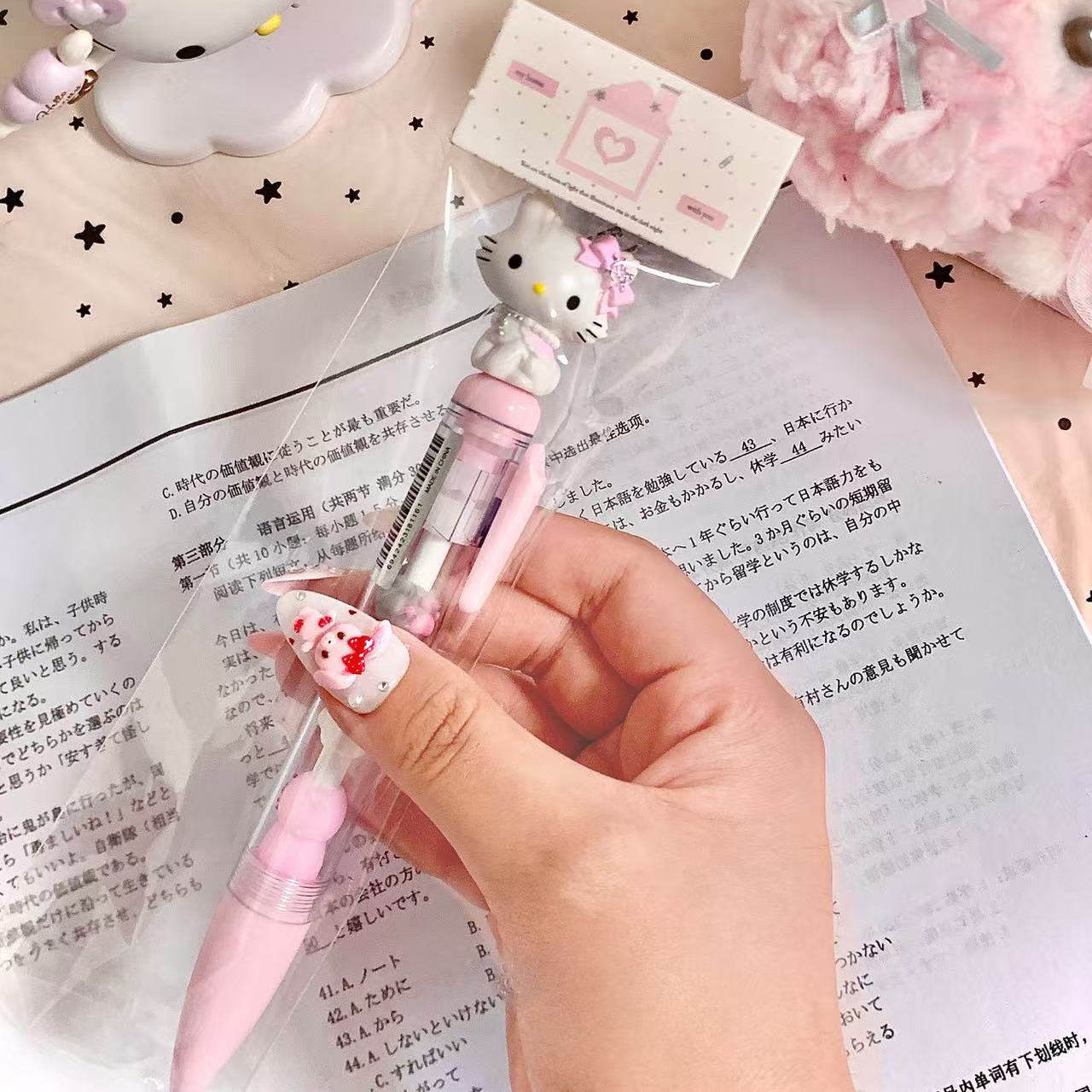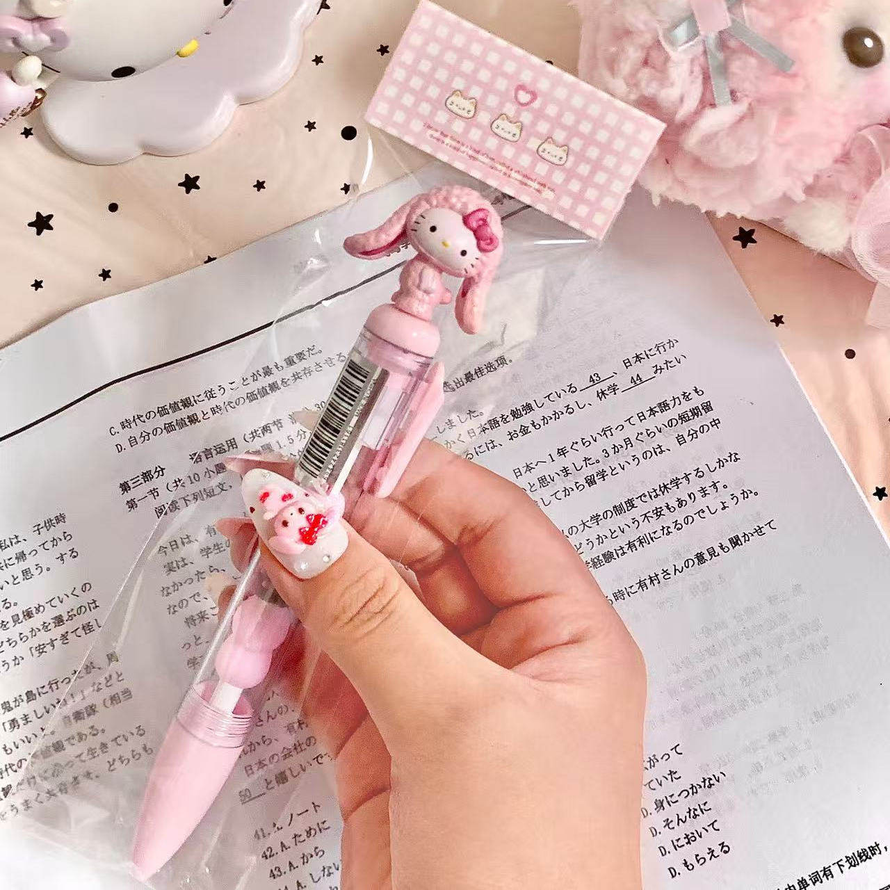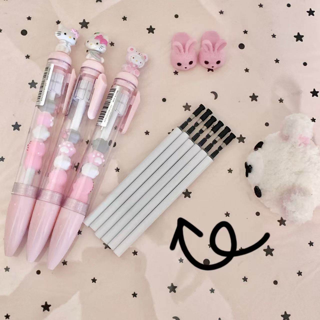 4s4kiiii自制ins日韩可爱卡通立体猫爪粉色kt猫大容量0.5mm中性笔