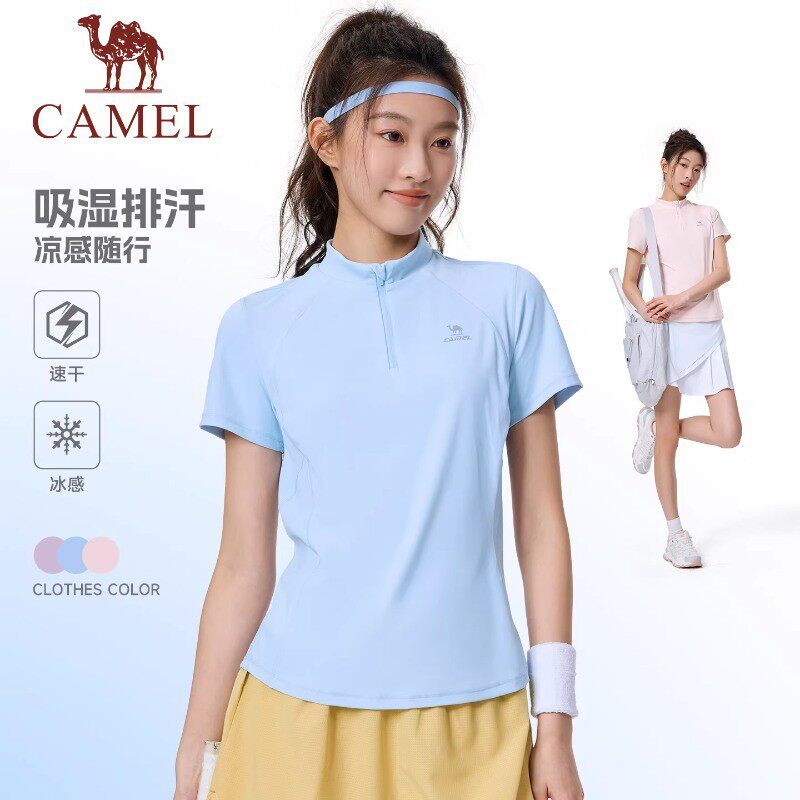 骆驼健身立领速干T恤女2026夏季新款吸湿运动网球瑜伽服短袖上衣