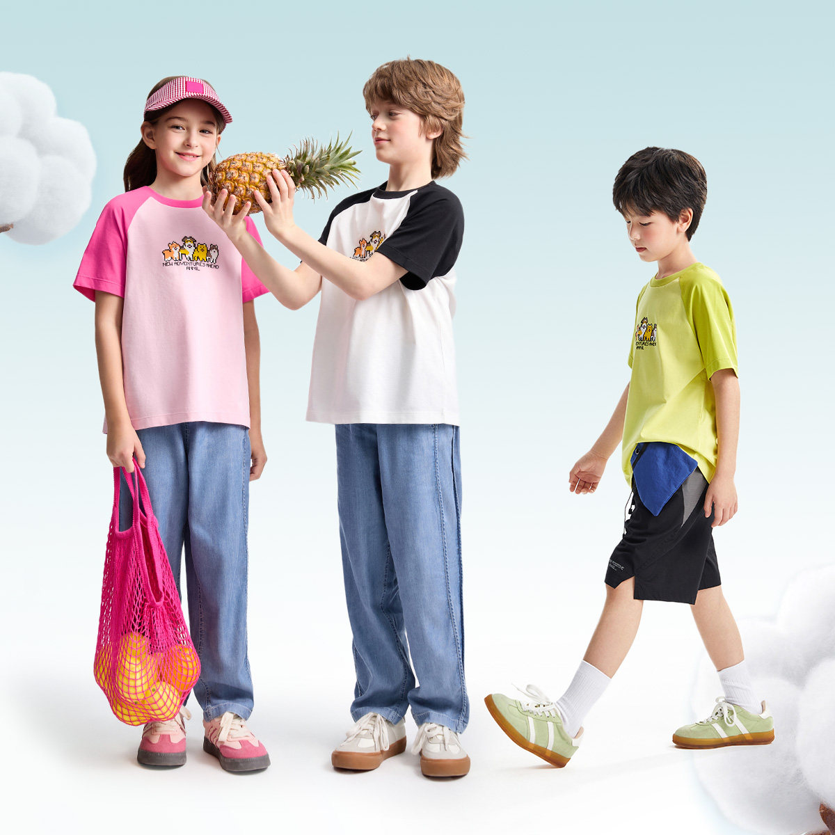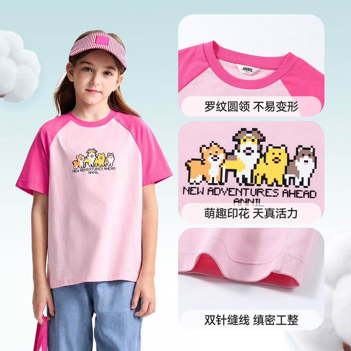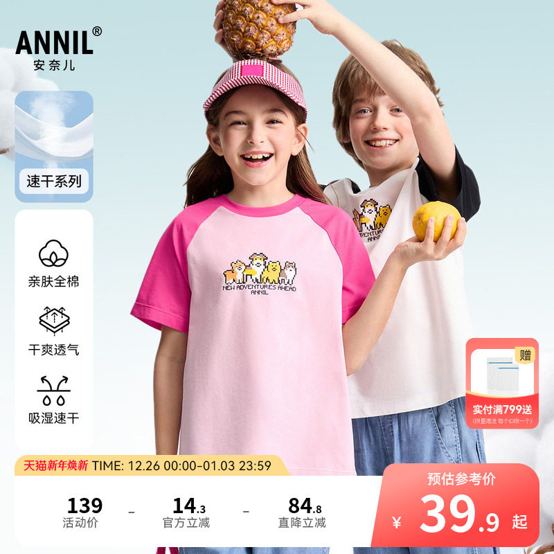 【全棉速干T】安奈儿童装男童女童圆领短袖T恤2025夏新款透气