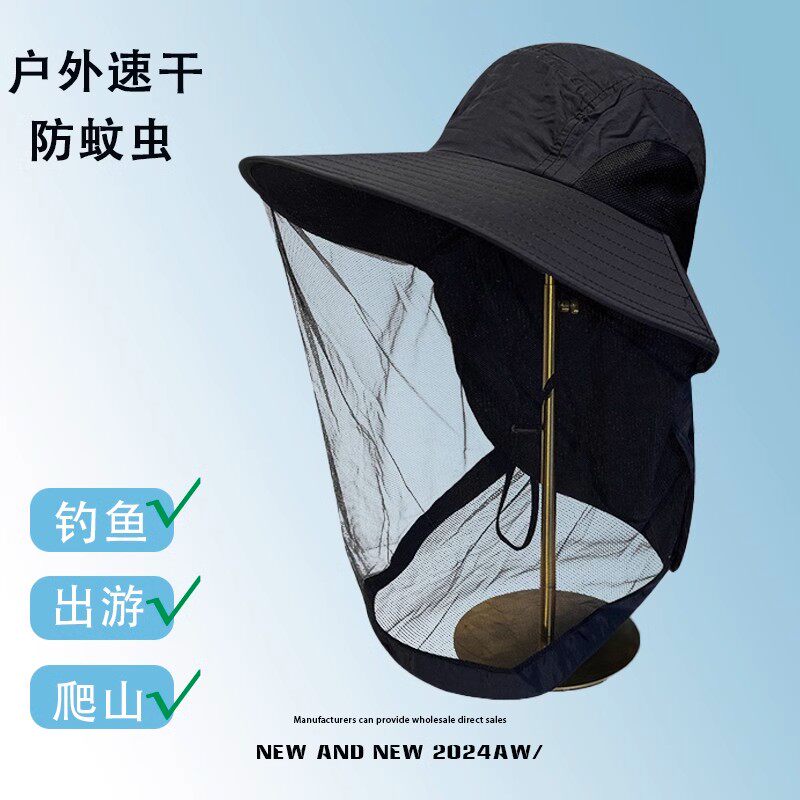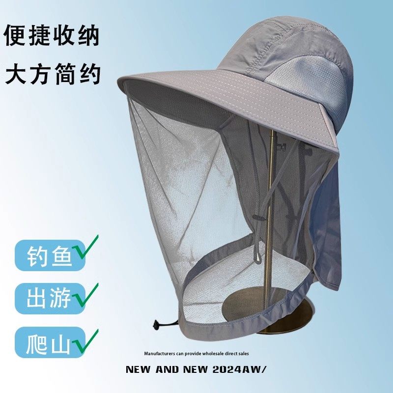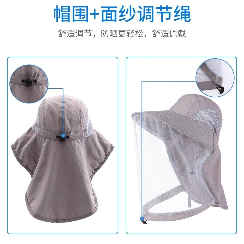 防晒帽男女登山帽防蚊虫防紫外线面罩钓鱼网纱渔夫帽太阳帽遮阳