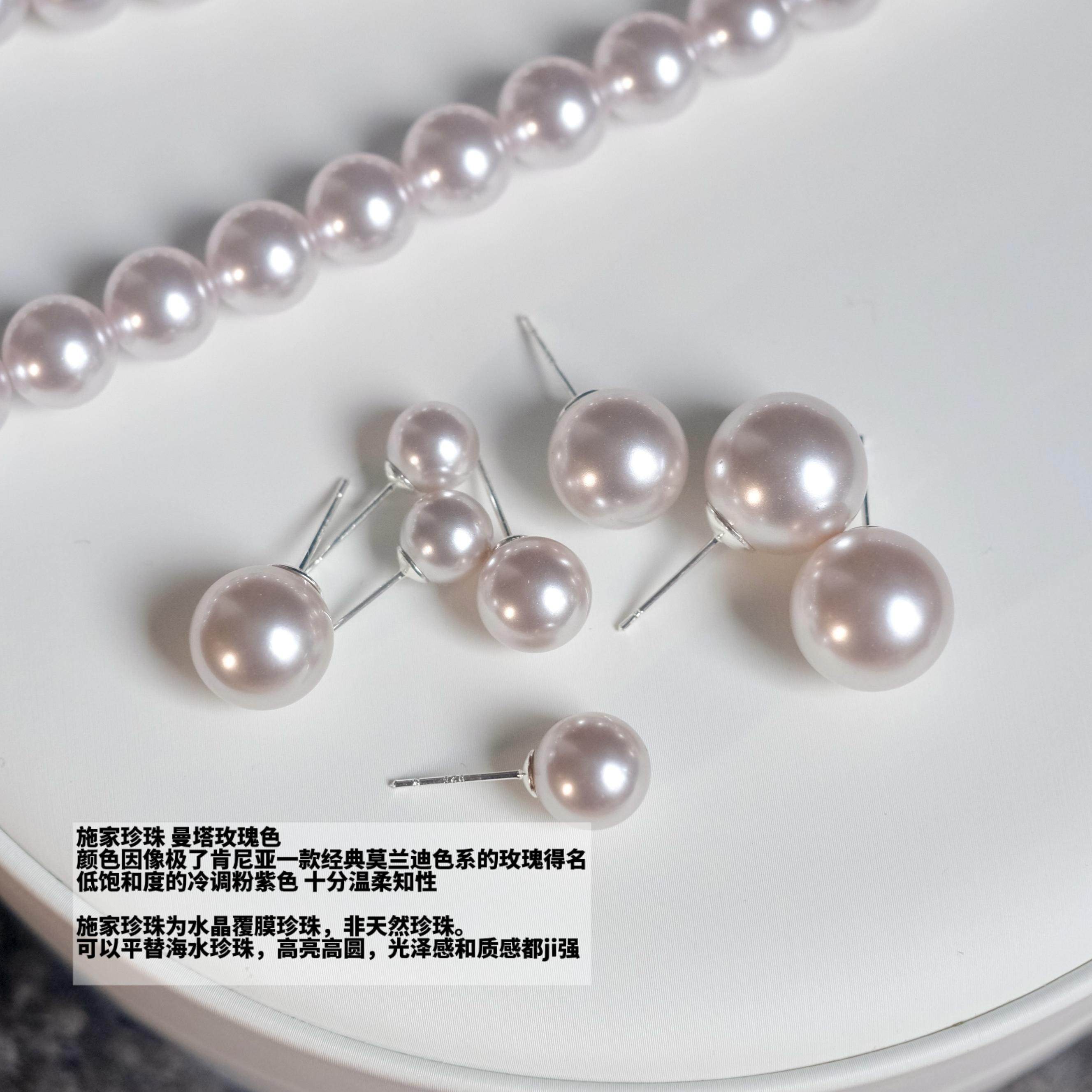 《曼塔玫瑰》法式复古强光正圆施家珍珠雾紫色圆球耳钉耳夹耳饰女