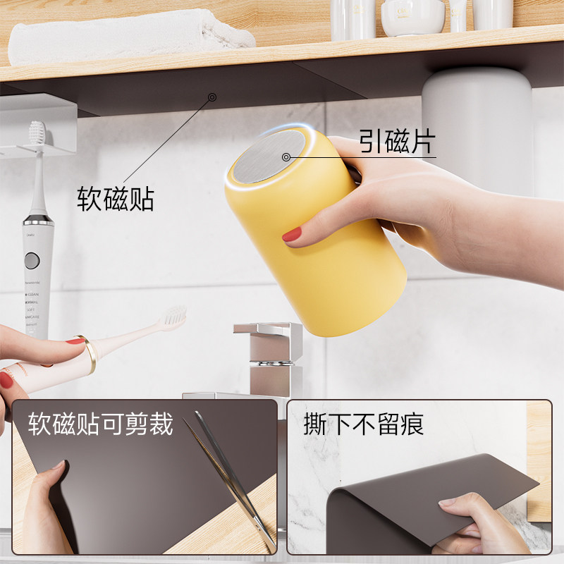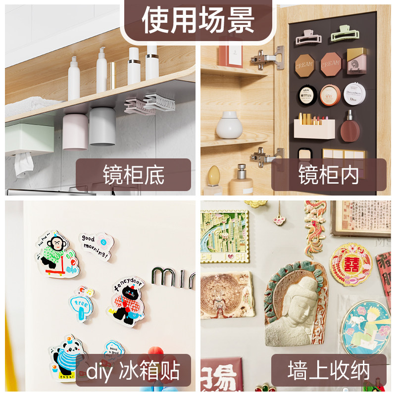 3M背胶强磁贴片双倍磁力升级加厚家居收纳镜柜底收纳专用A4软磁贴片镜柜内门后自粘磁性贴漱口杯磁吸倒挂神器