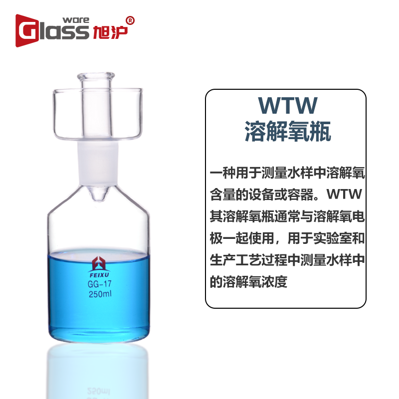 【旭沪】WTW溶解氧瓶玻璃培养瓶玻璃双盖培养瓶透光性好250ml污水瓶喇叭口氧气浓度检测仪配件